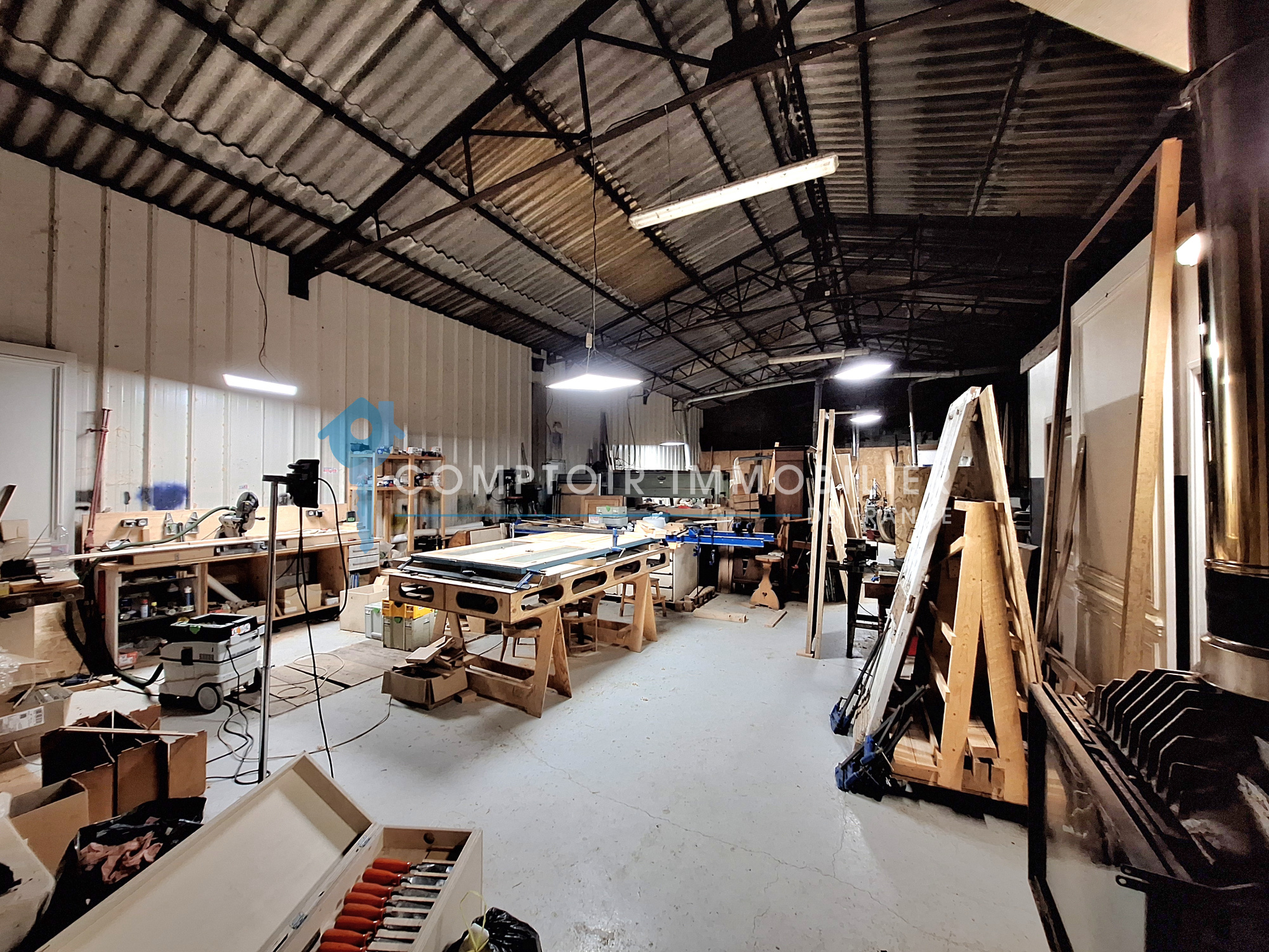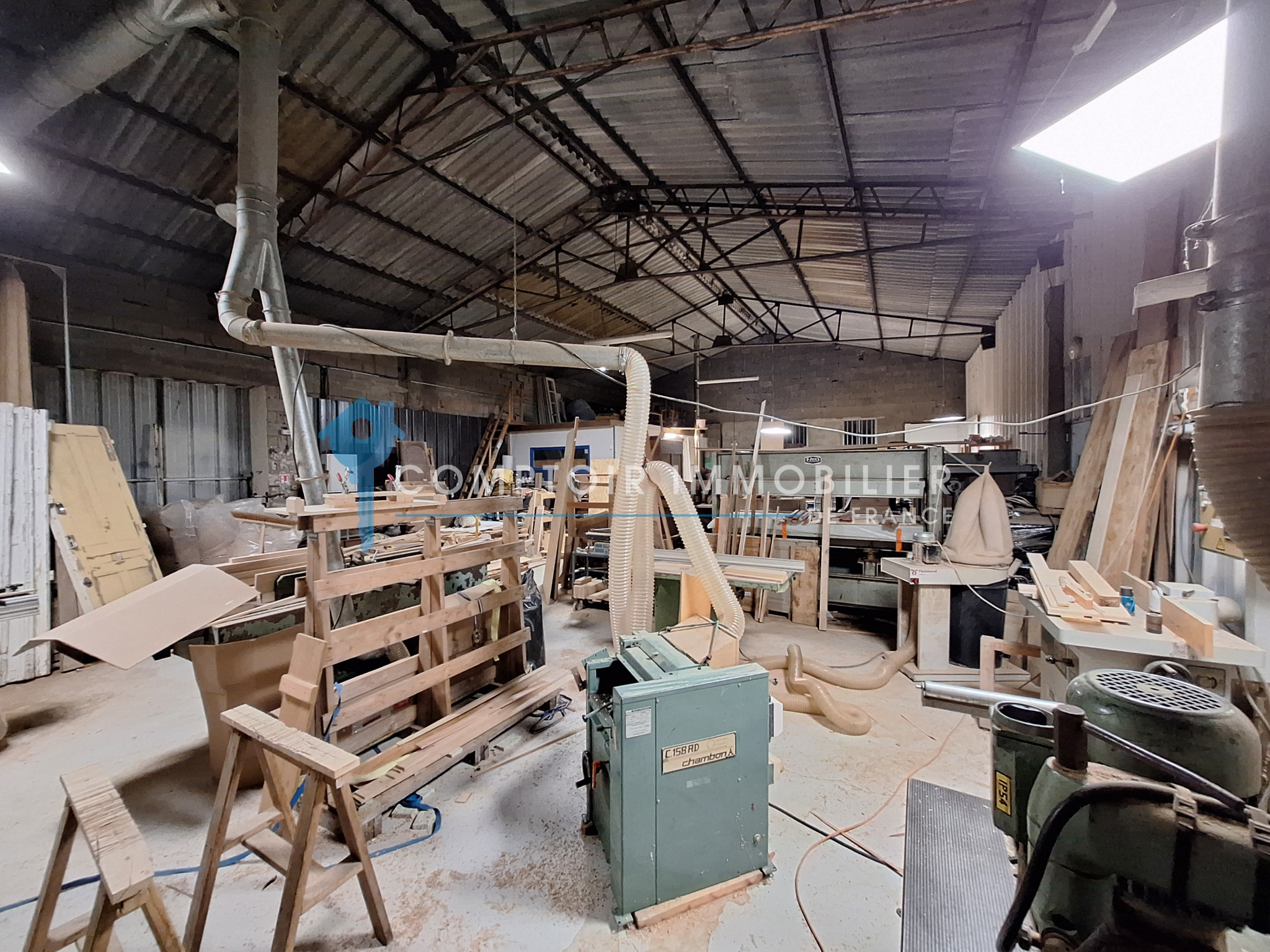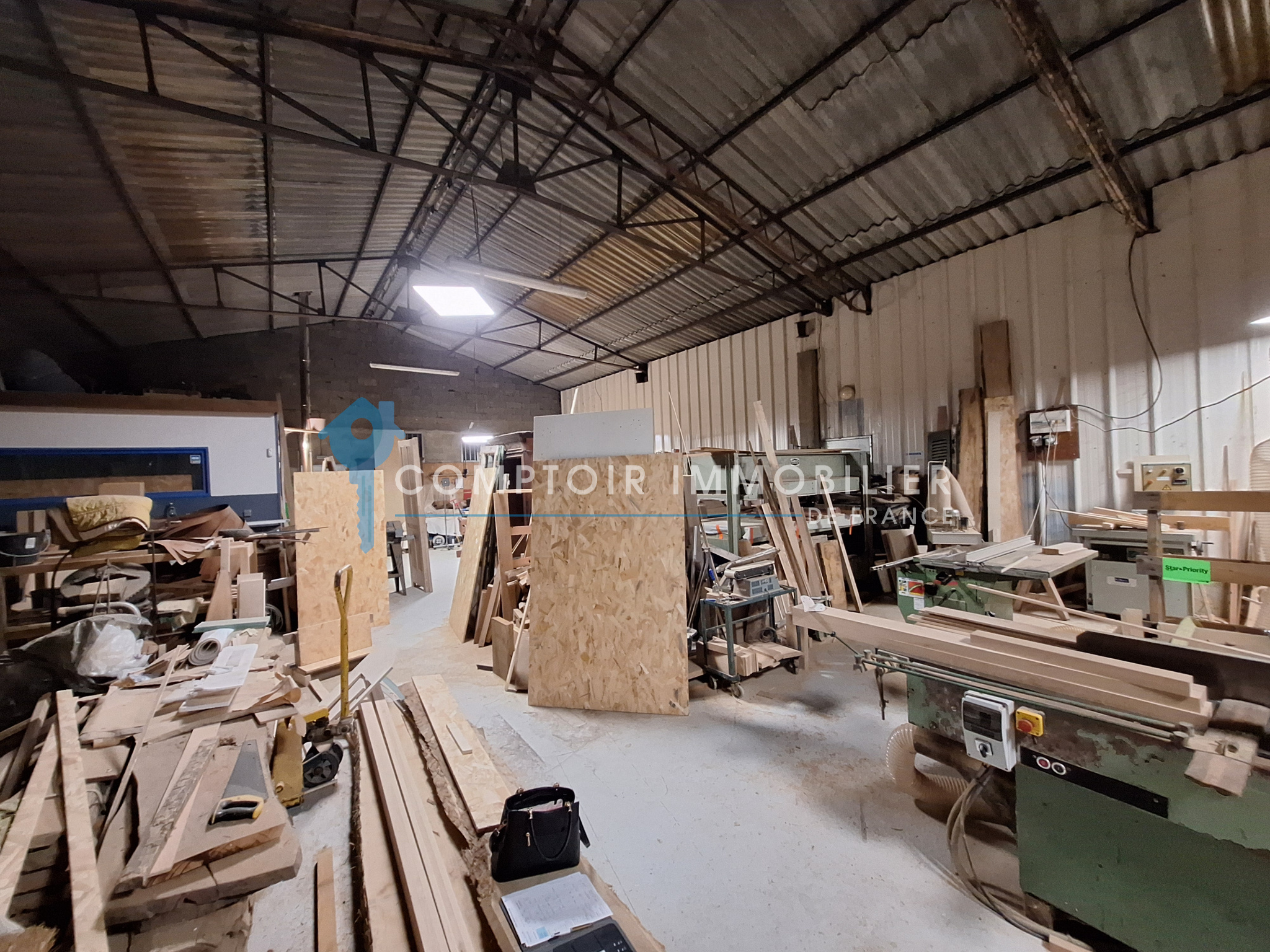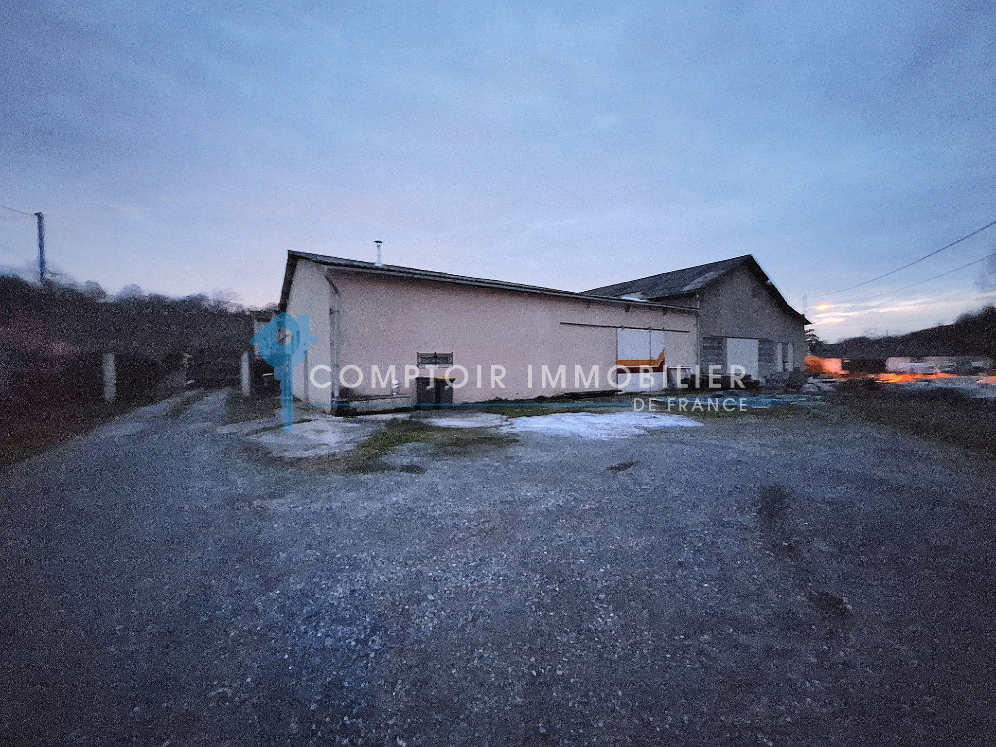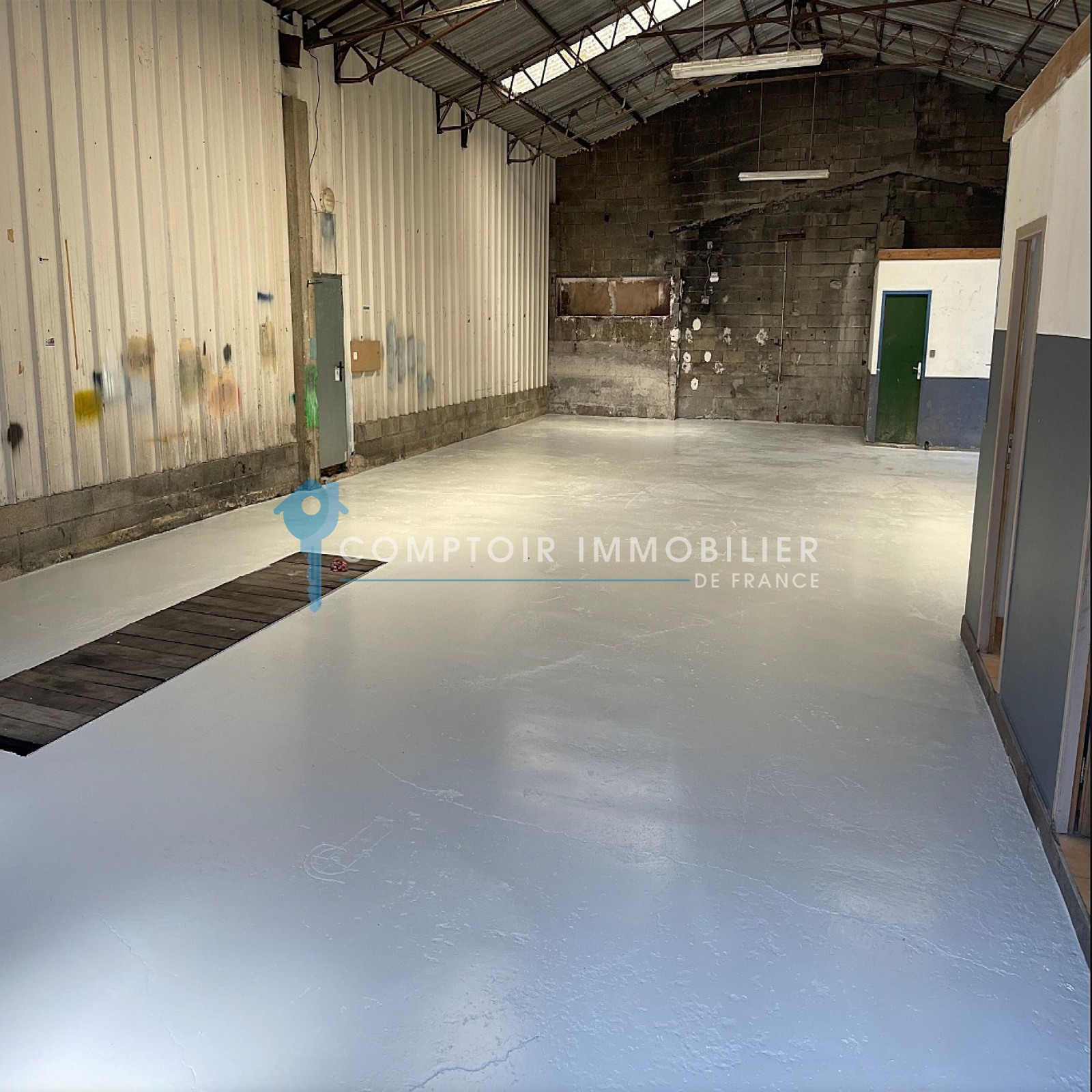 Grand dépôt de 187m² avec portail coulissant sécurisé en façade de 3m de haut et 3,40m de large + porte de service sur le côté du bâtiment, évier, fosse de vidange avec pompe de relevage.