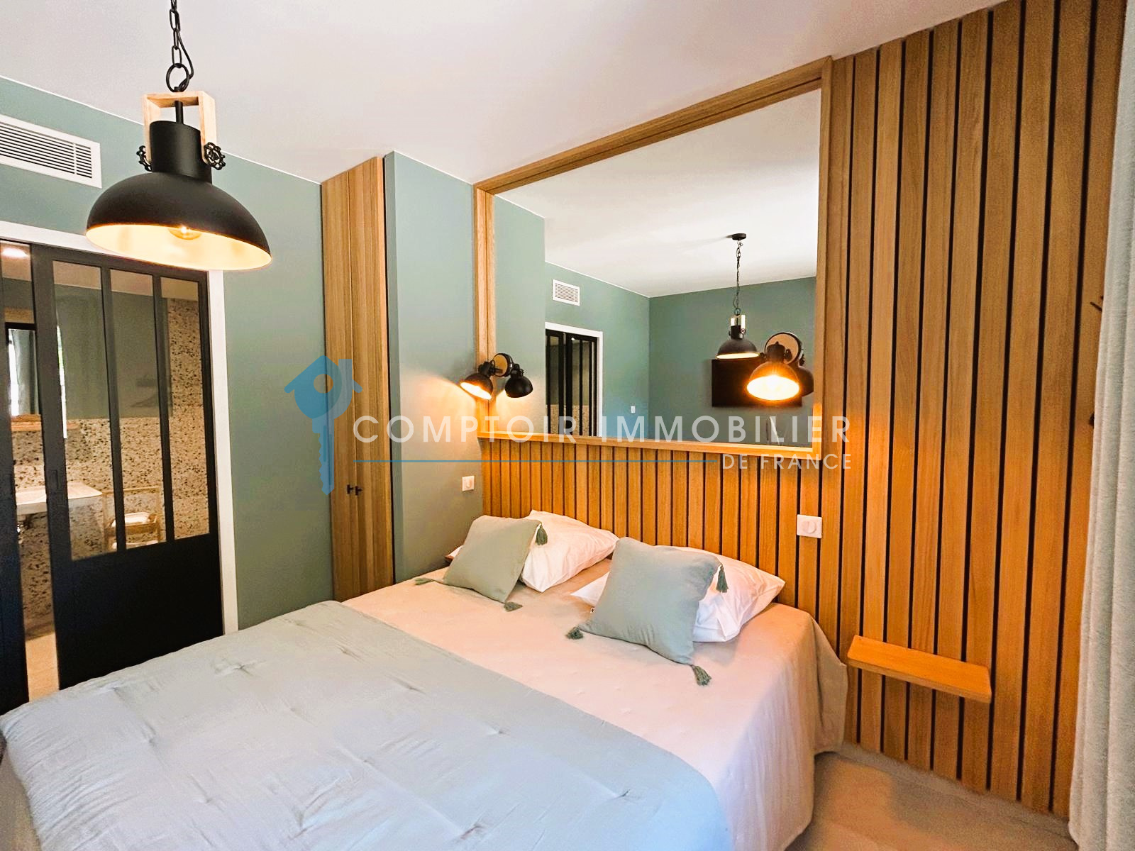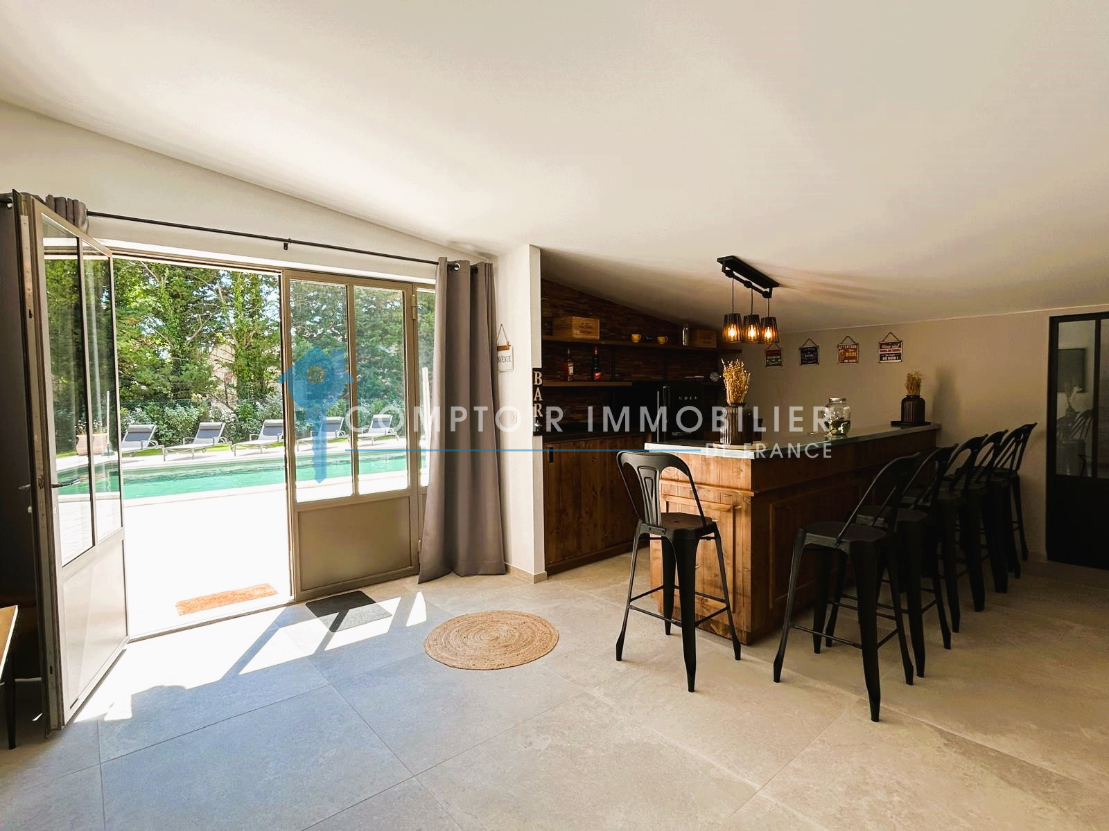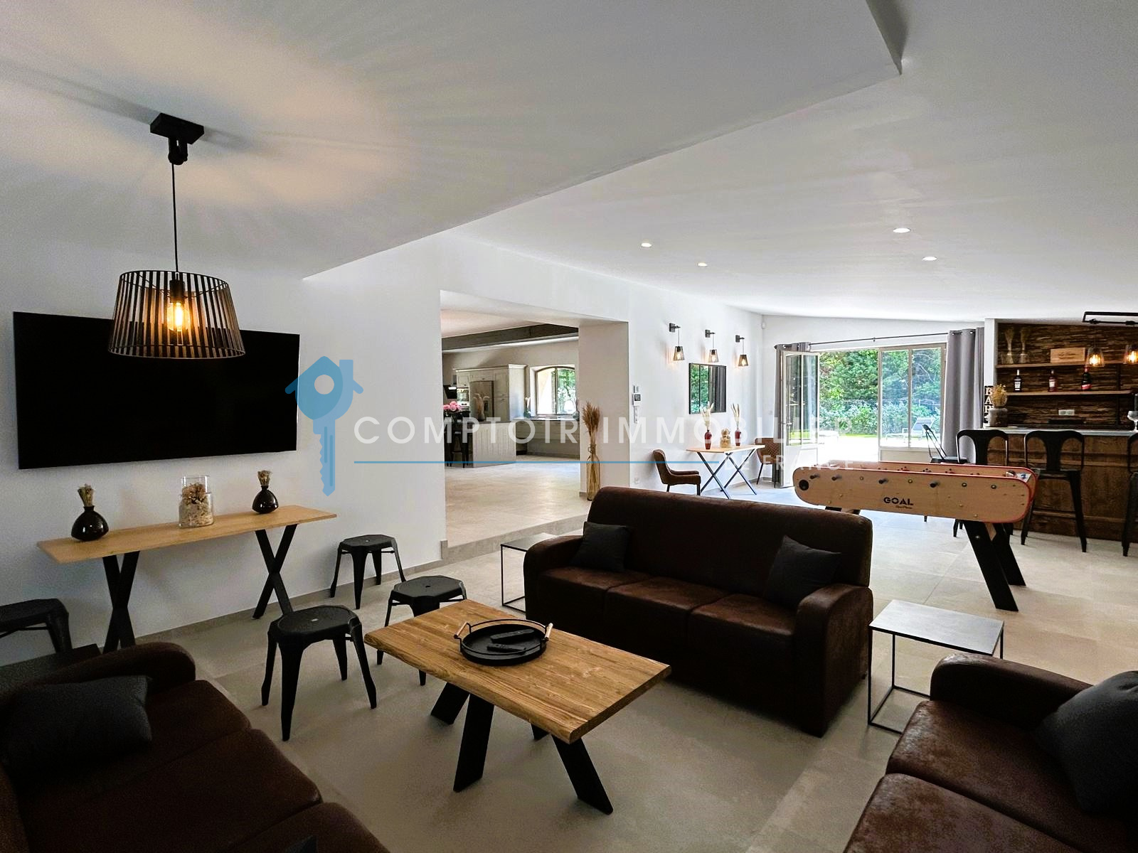 À l’extérieur, Piscine chauffée avec plage sécurisée et transats, salon de jardin avec barbecue à gaz, terrain de pétanque, parking privé avec borne de recharge électrique, le tout protégé par un portail éléctrique.