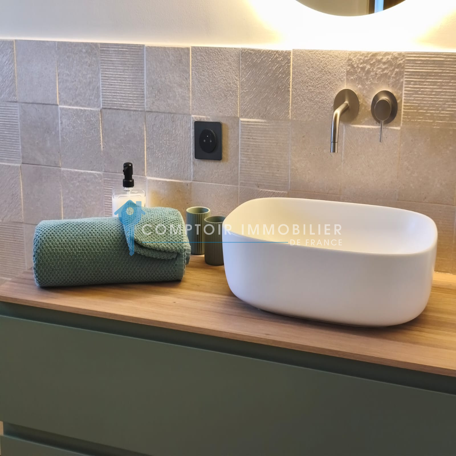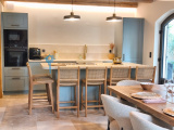 À l’intérieur, la maison, pensée pour recevoir jusqu’à 6 personnes, offre une cuisine ouverte entièrement équipée et conviviale, un salon chaleureux, une buanderie ainsi qu’un toilette invité.