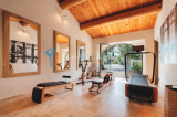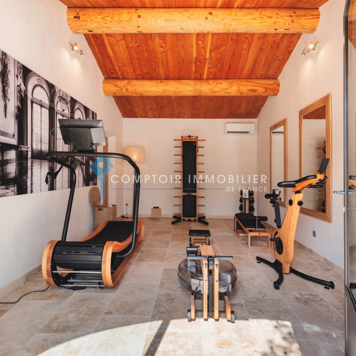 Une chambre confortable, avec sa salle d’eau, offre un accès direct au jardin, créant un cocon en harmonie avec la nature environnante, enfin, une salle de musculation, pensée pour le bien-être, vient parfaire ce niveau et séduira les amateurs de moments dédiés à soi.