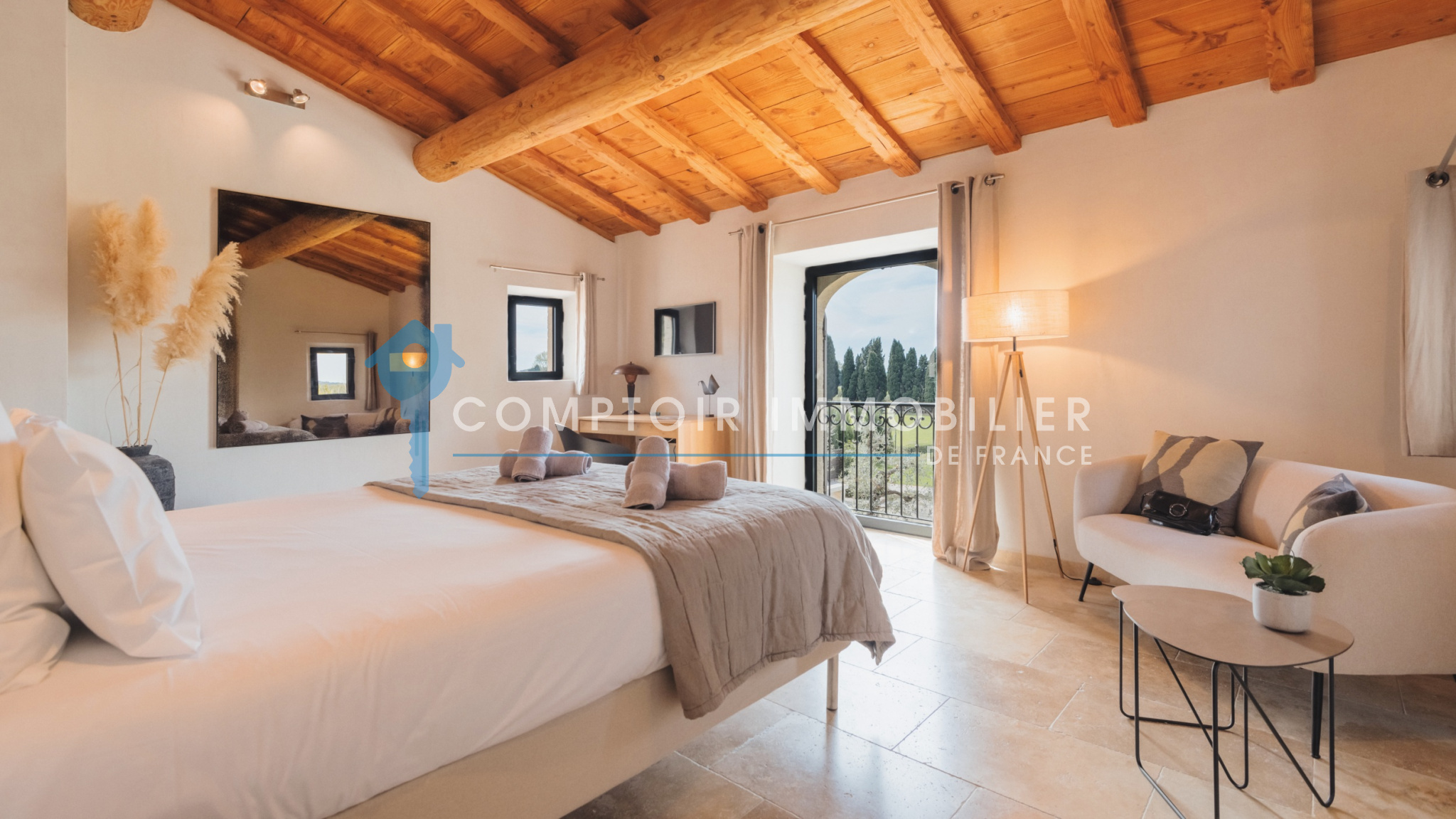 Alliant le charme de l’ancien à la qualité des matériaux d’une maison neuve, il séduit par son harmonie subtile entre décoration bohème chic, le mobilier soigneusement choisi et prestations haut de gamme. Avec ses 310 m² implantés sur un hectare de terrain, « Marius » est une invitation à ralentir, à savourer chaque instant et à se laisser porter par la douceur de vivre provençale.
