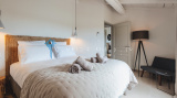 À l’étage, vous découvrirez quatre chambres : deux disposent de leur salle d’eau privative, tandis que les deux autres se partagent une salle d’eau, avec un WC indépendant.