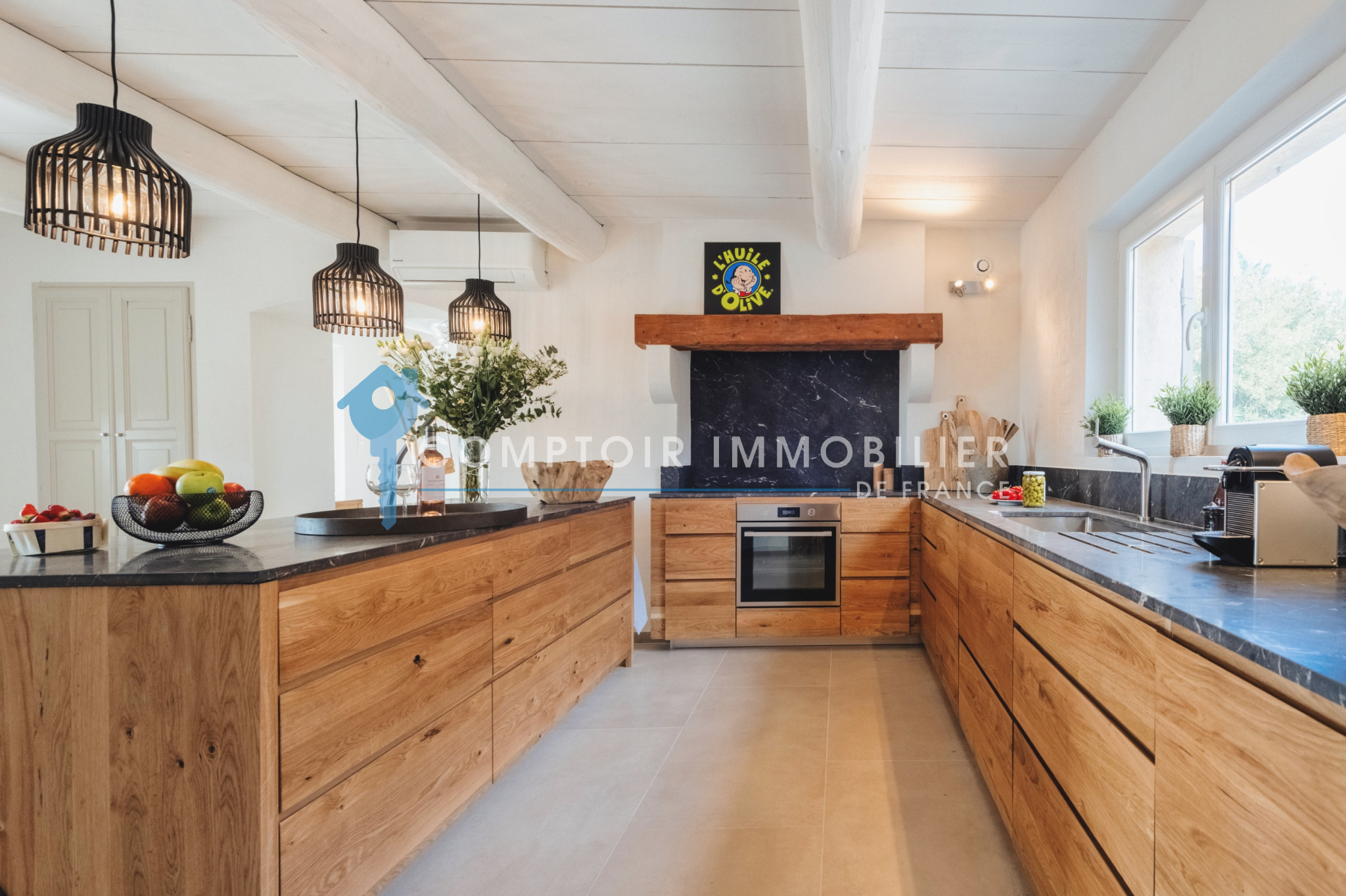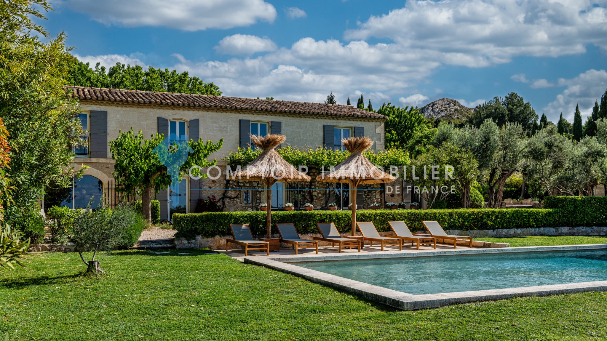 À l’extérieur, tout n’est que douceur de vivre et art de recevoir… La piscine (6 x 12 m), bordée de transats et de parasols, devient le cœur des journées ensoleillées ; son chauffage, disponible sur demande (300 € par semaine).