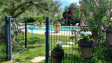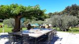 Les extérieurs incluent un parking privé, une piscine sécurisée, un pool house, un barbecue, un salon de jardin, un espace de jeux pour enfants, et un terrain de pétanque. Le linge de maison et les serviettes sont fournis, ainsi que le ménage en fin de séjour et 7 heures de ménage par semaine. Les animaux ne sont pas acceptés et la maison est non-fumeur. La propriété dispose également d'un lecteur DVD, d'une chaîne hi-fi, et du Wi-Fi.