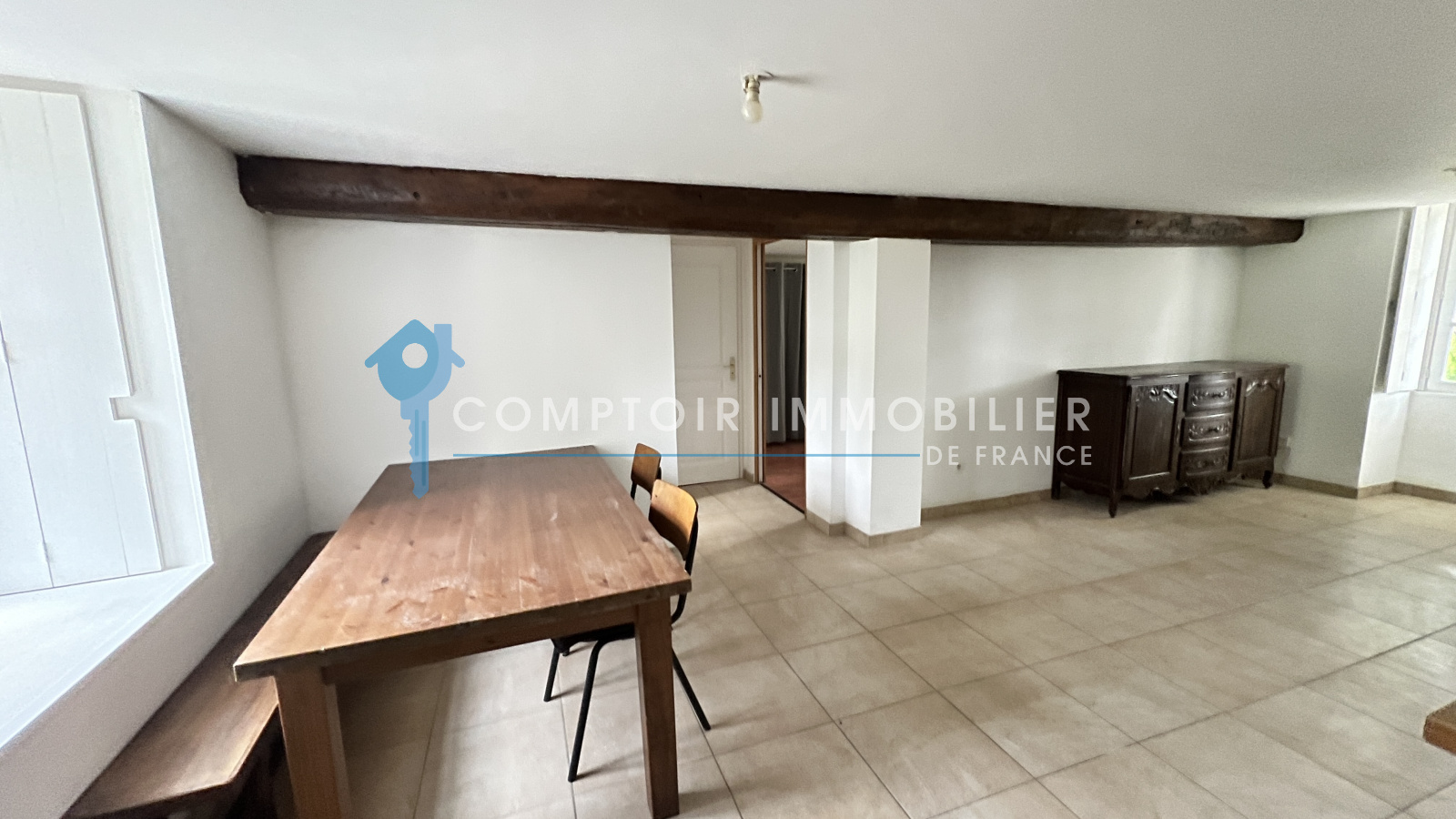 Un salon traversant / 21m², Une cuisine équipée ouverte / 10m², Une grande chambre / 12m²; salle d'eau / 5m² et wc séparé.
