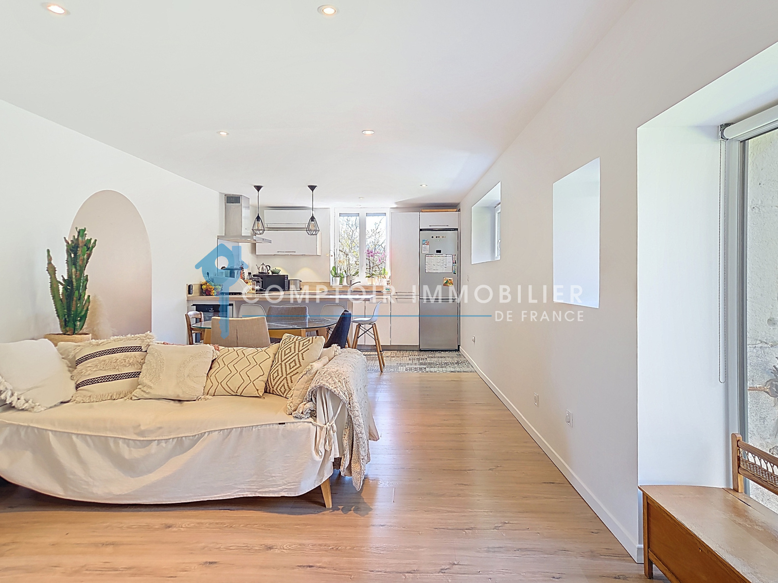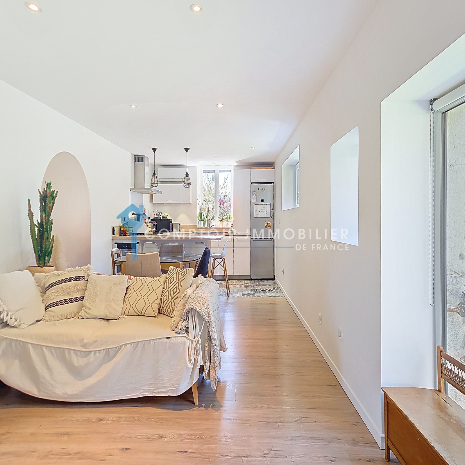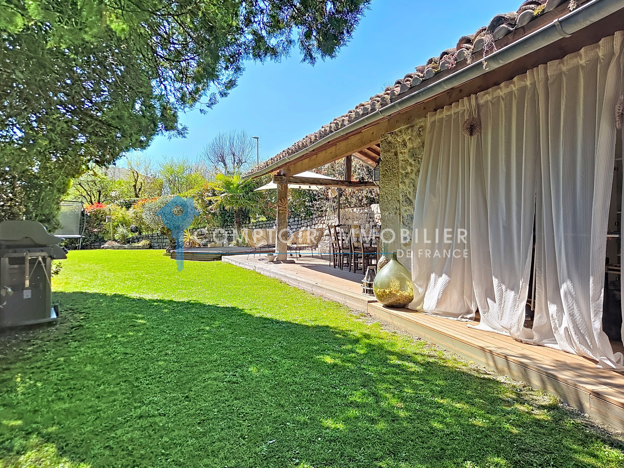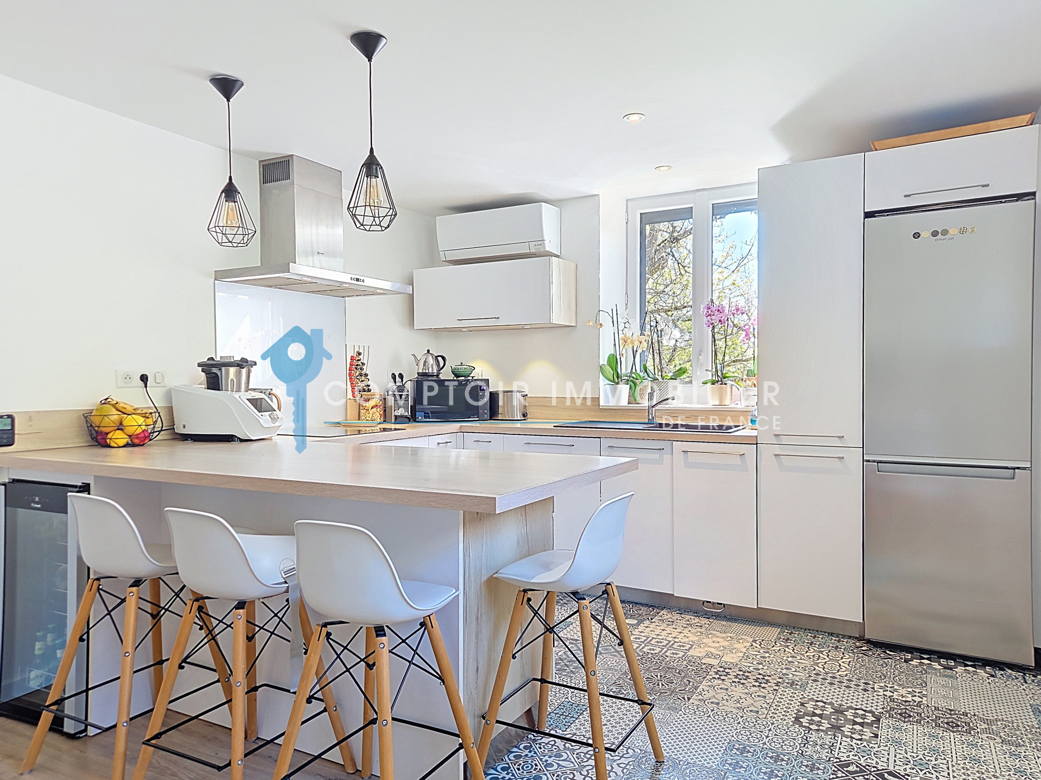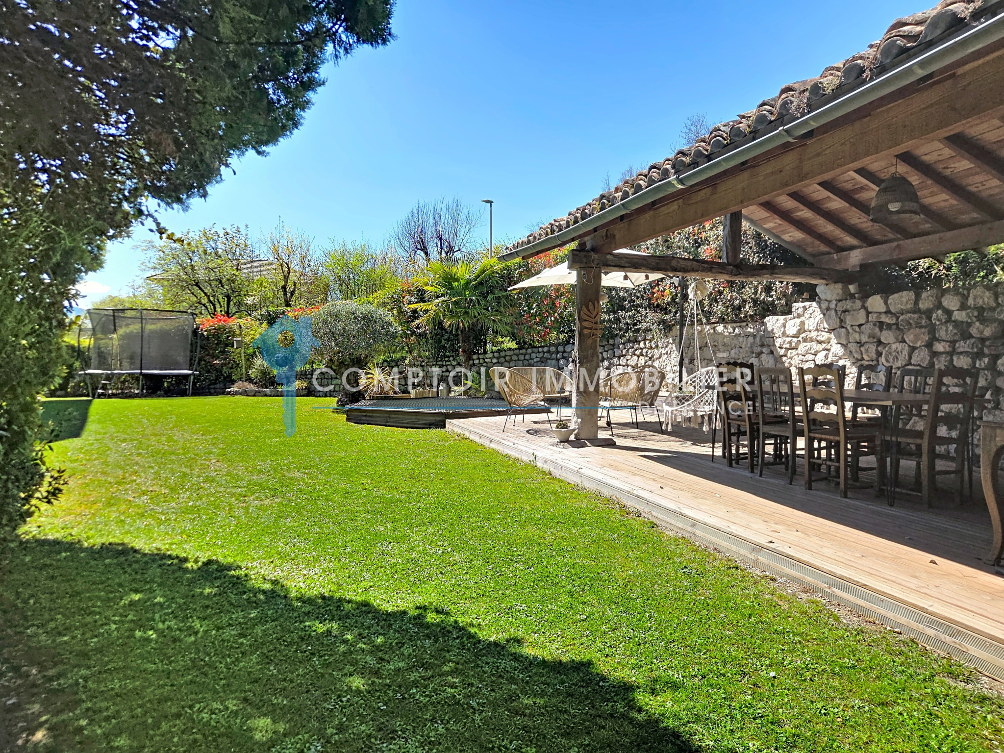 Maison T5 d’environ 128 m² habitables, louée meublée, construite sur 3 niveaux dans les années 1850 et entièrement rénovée en 2016, sur une parcelle close d’environ 400 m², bénéficiant d’une exposition Sud-Ouest et d’une vue imprenable sur la Chartreuse.