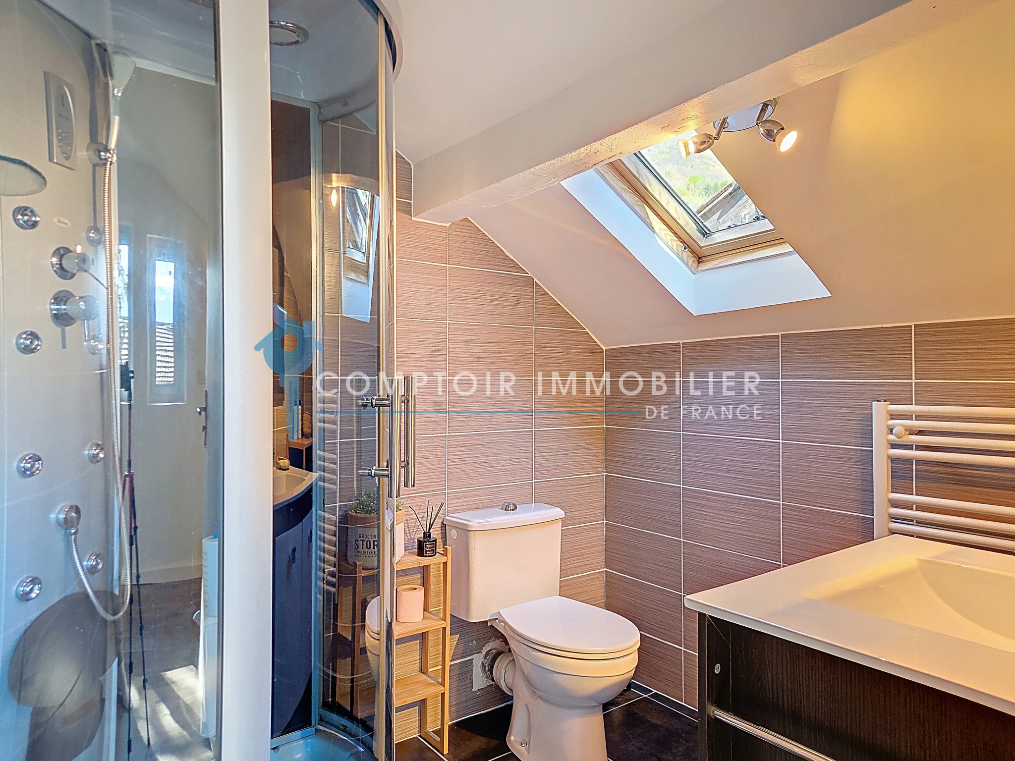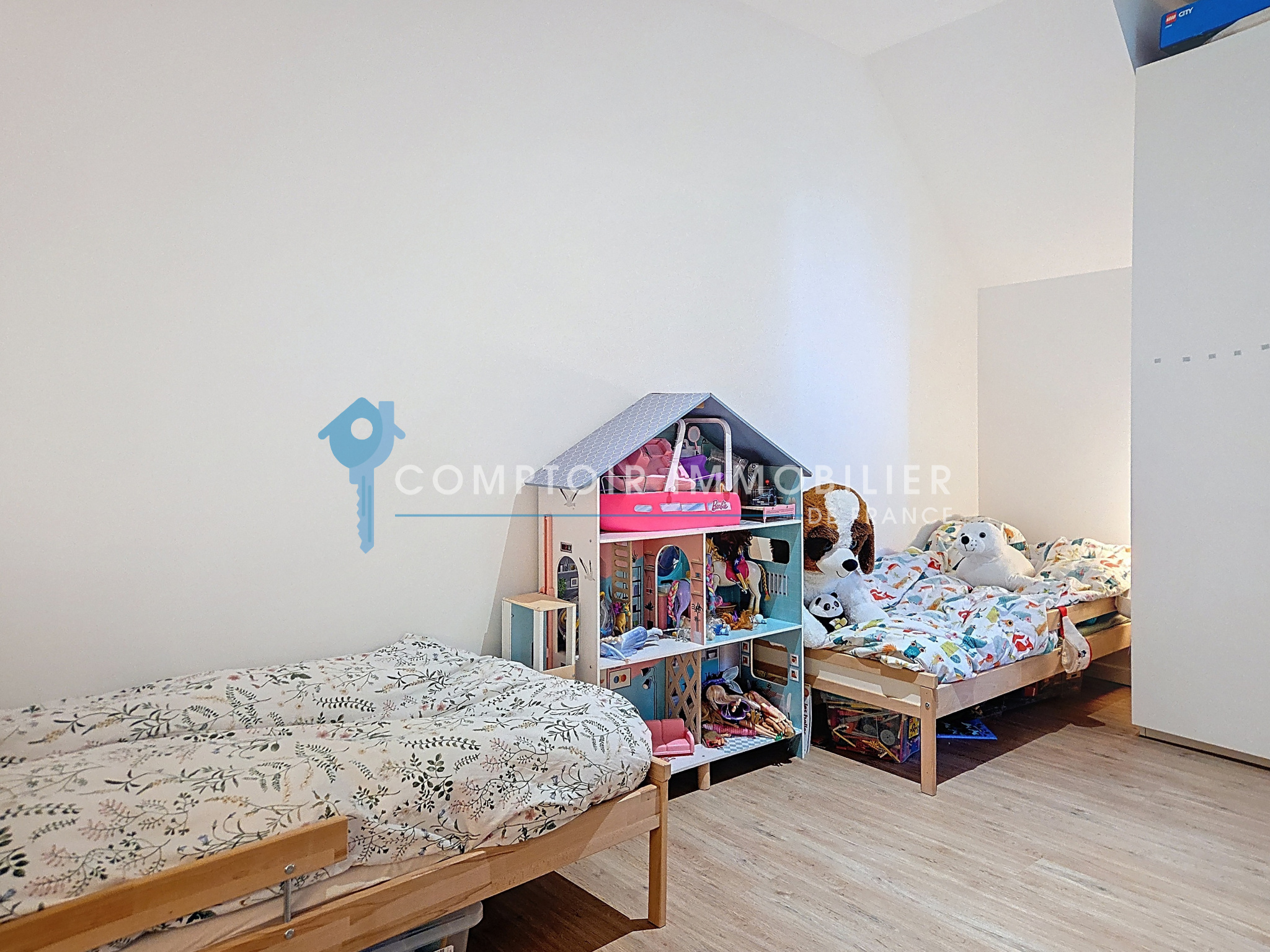 Au 1er étage, vous retrouverez 2 chambres de 11 et 12 m², un dressing indépendant et une salle d’eau avec WC intégré.