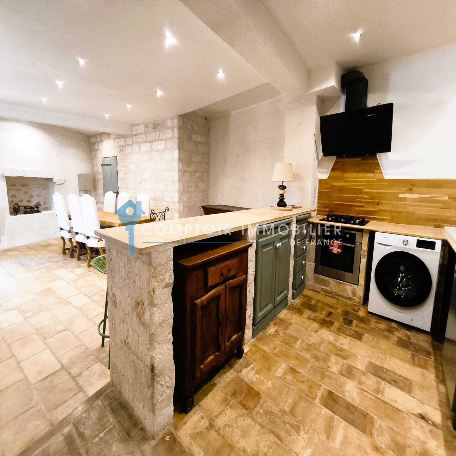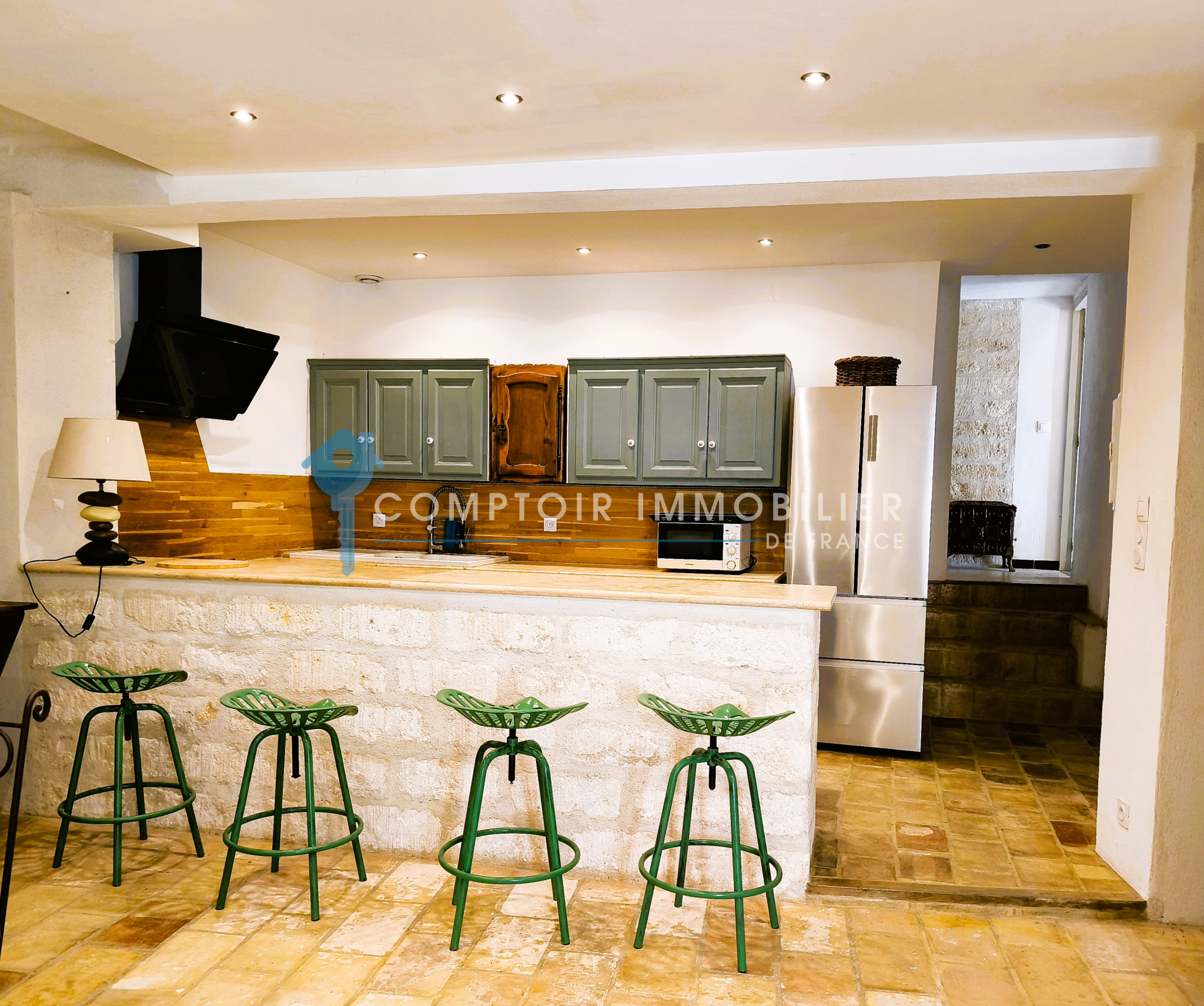 Dès le rez-de-chaussée, vous serez séduits par une cuisine entièrement équipée, ouverte sur un salon cosy et convivial, ainsi qu’une chambre bénéficiant d' une salle d’eau et de toilettes.