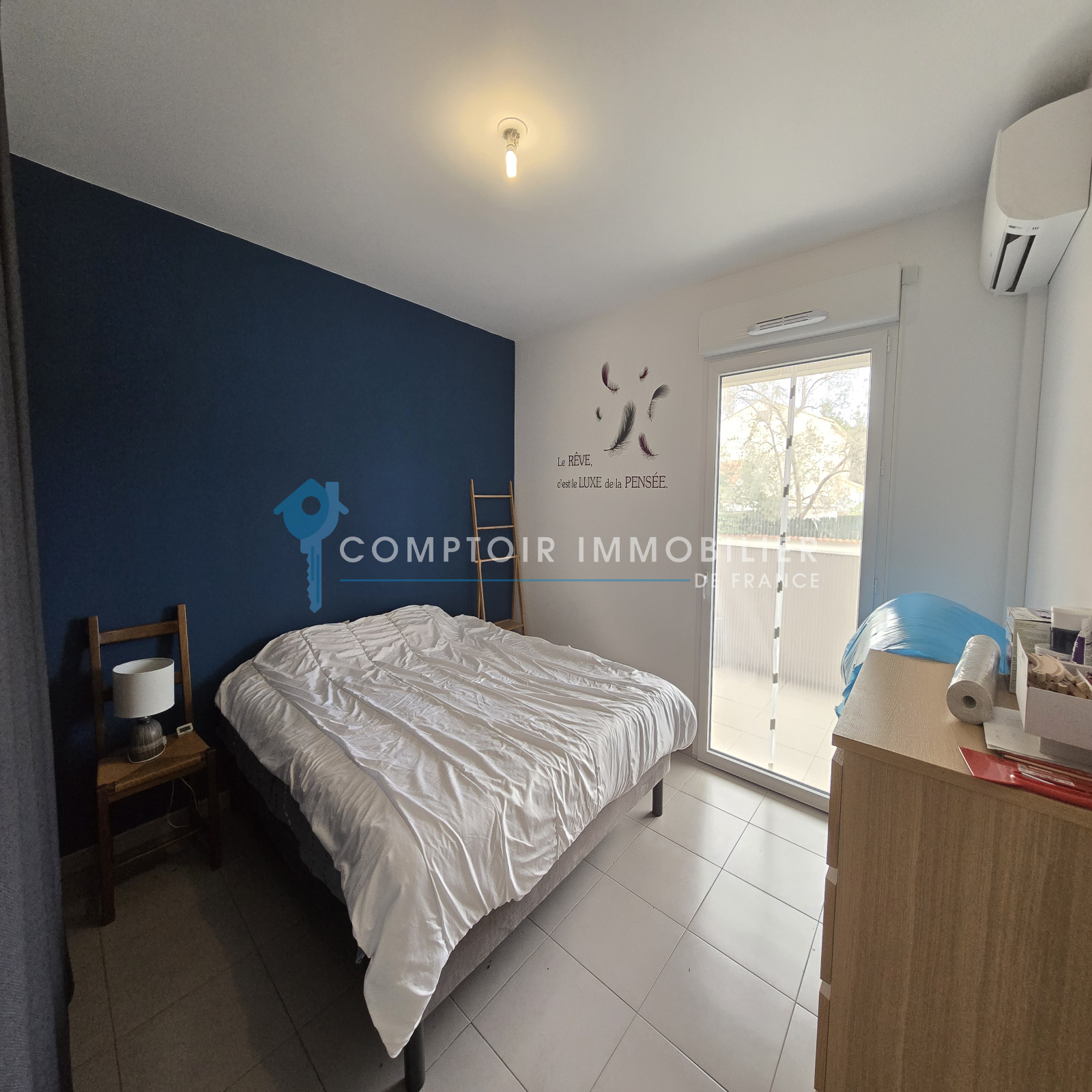 Il se compose d'un hall d'entrée avec placard, d'une spacieuse pièce de vie, de deux chambres avec placards ainsi que d'une salle de bains.