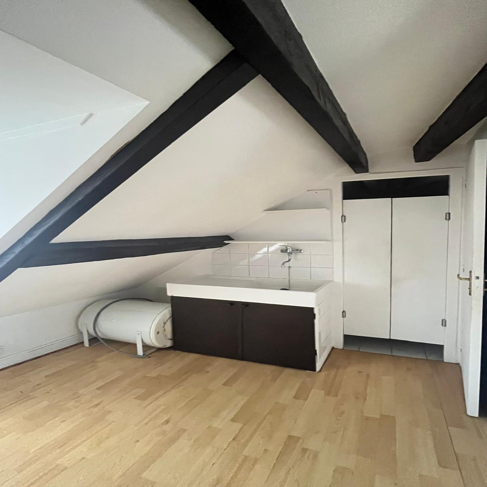Idéal pour une personne seule, ce studio offre le charme de l’ancien avec ses poutres apparentes