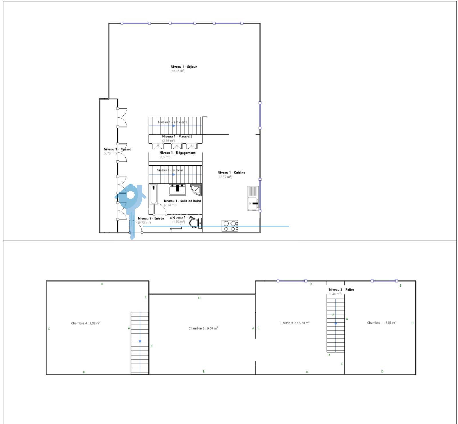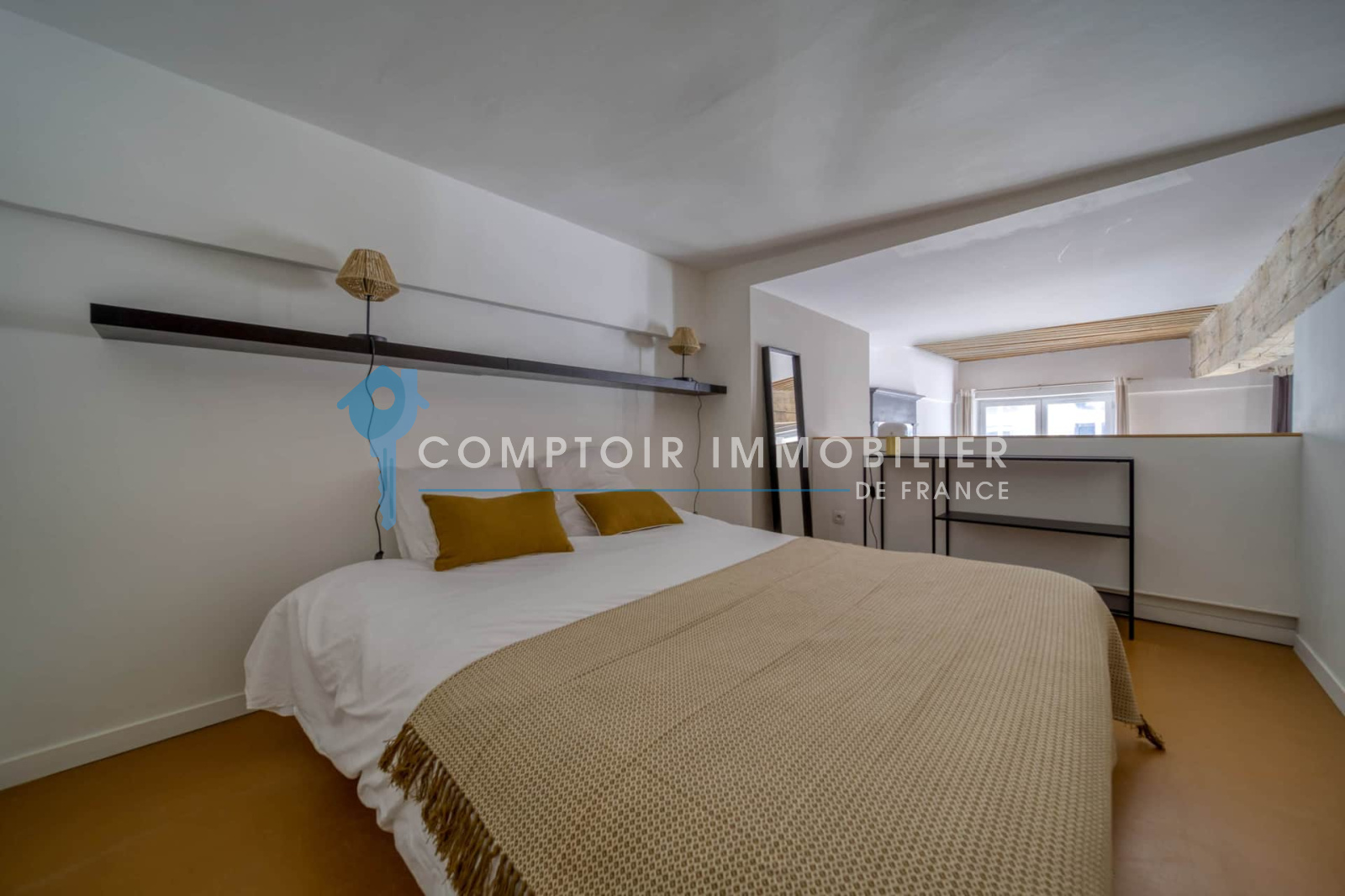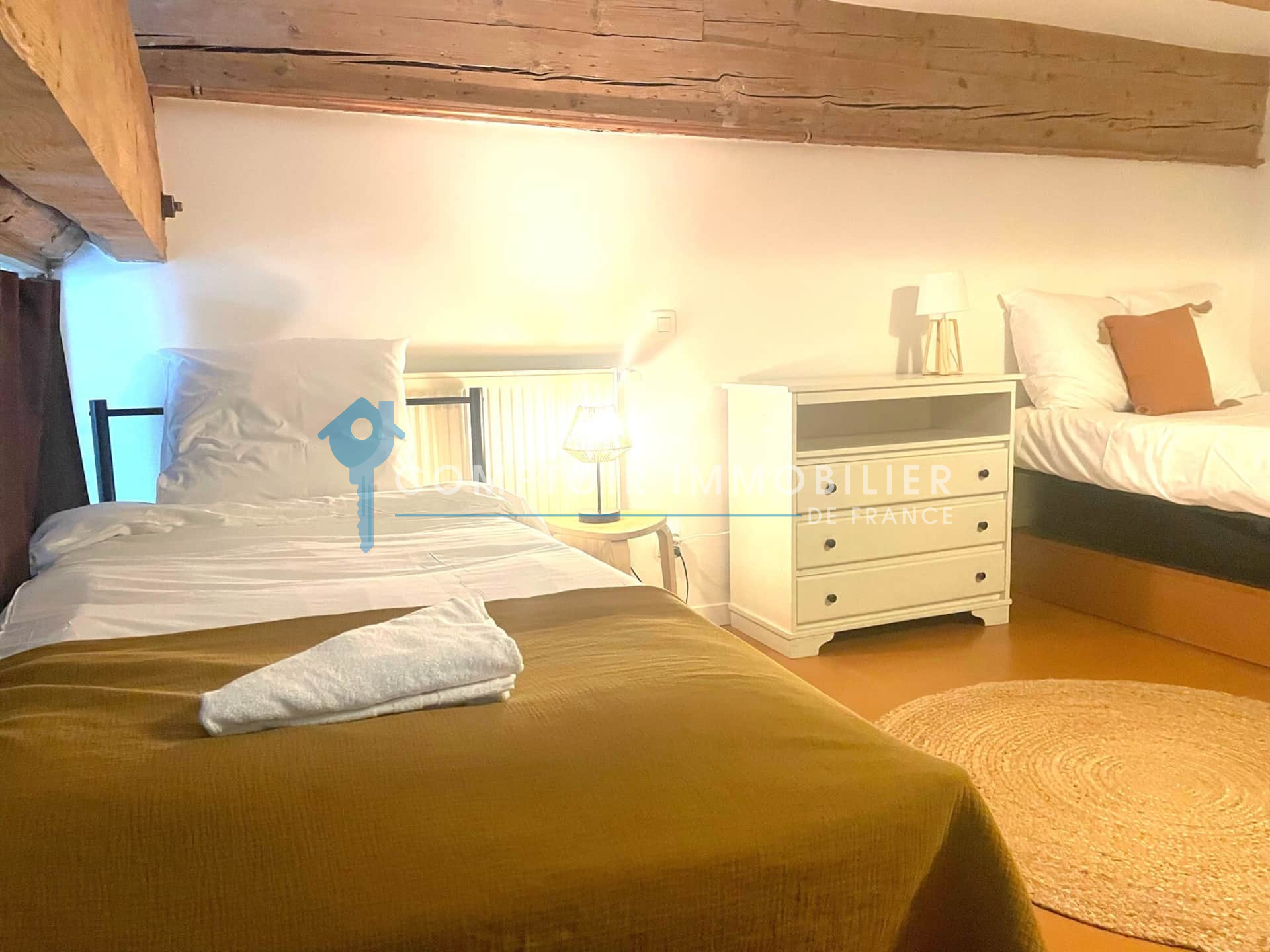 À l’étage, l’espace nuit se compose de trois chambres et d’un espace bureau.