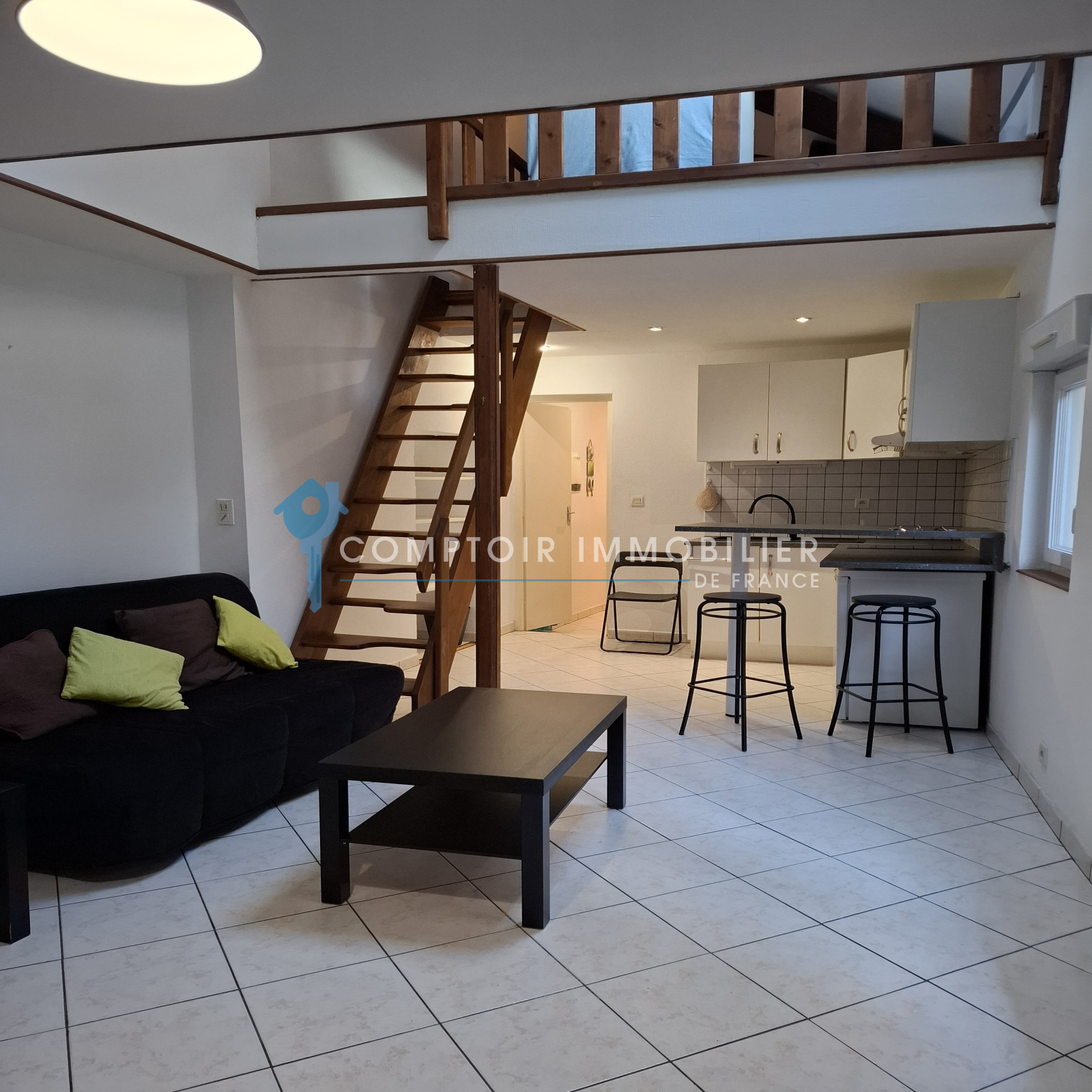 A Louer, T1bis de 25m² au calme et sans ascenseur. Venez découvrir cet appartement meublé comprenant une pièce de vie avec cuisine, une salle de bain avec wc et une mezzanine.