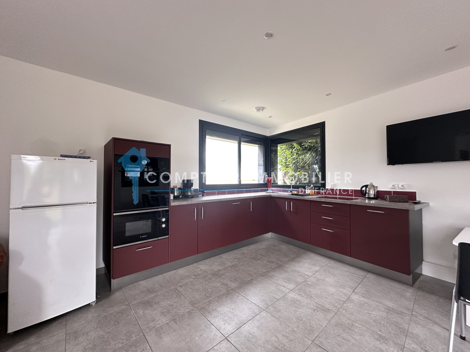 - Coin cuisine améagé et équipé (plaque de cuisson, micro-onde, four, réfrigérateur).