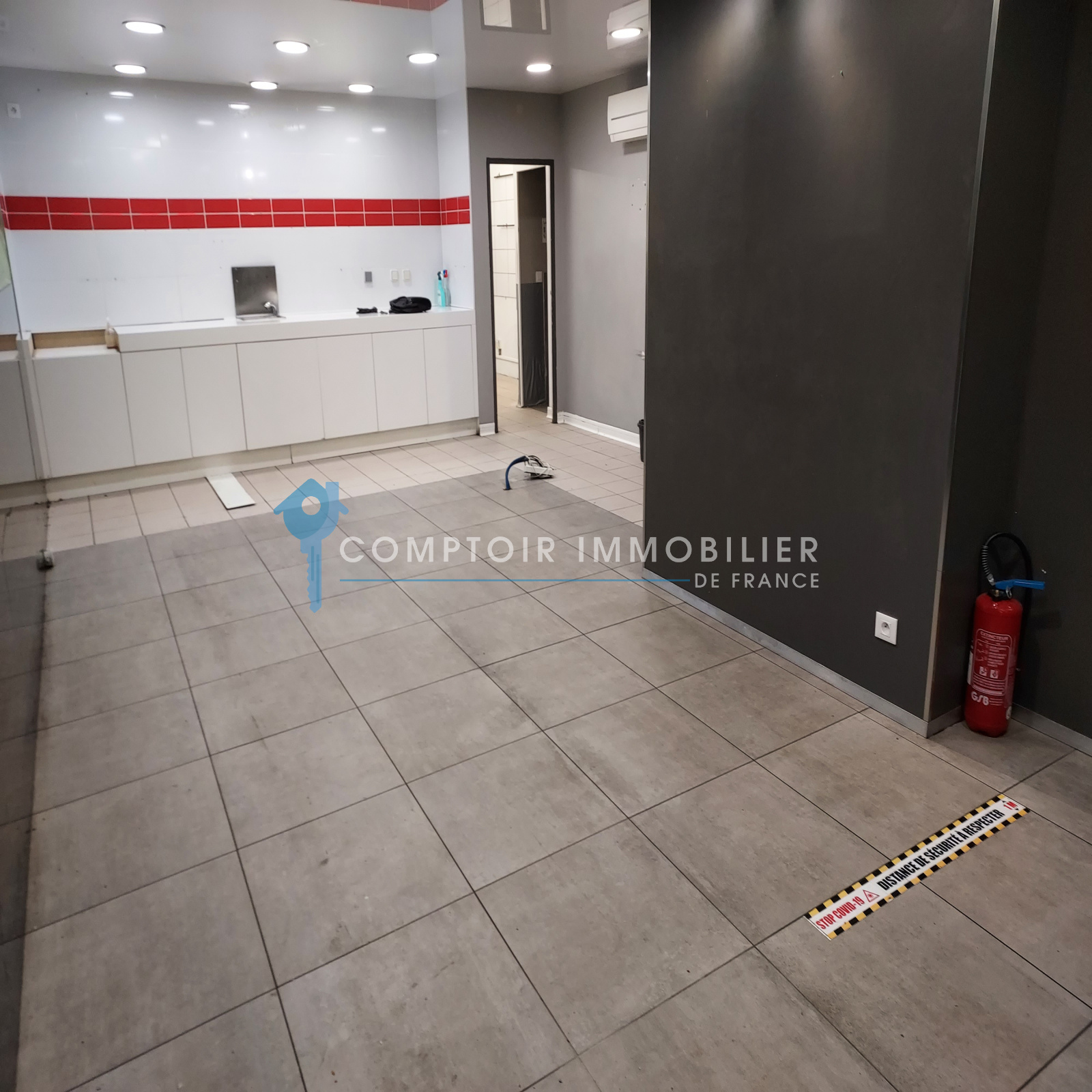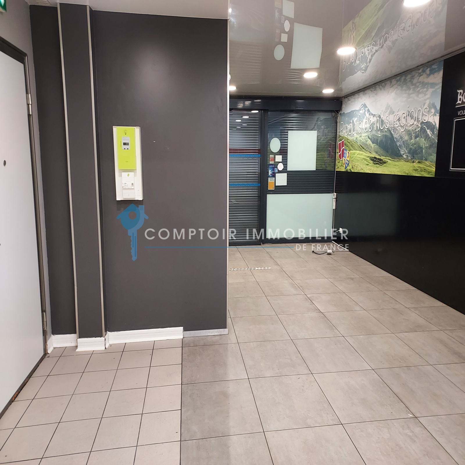 Belles prestations : Une vitrine de 3m linéaires : Avec porte coulissante sur baie vitrée a l'entrée et volets électriques extérieurs vous offrant une belle visibilité pour tous commerces.