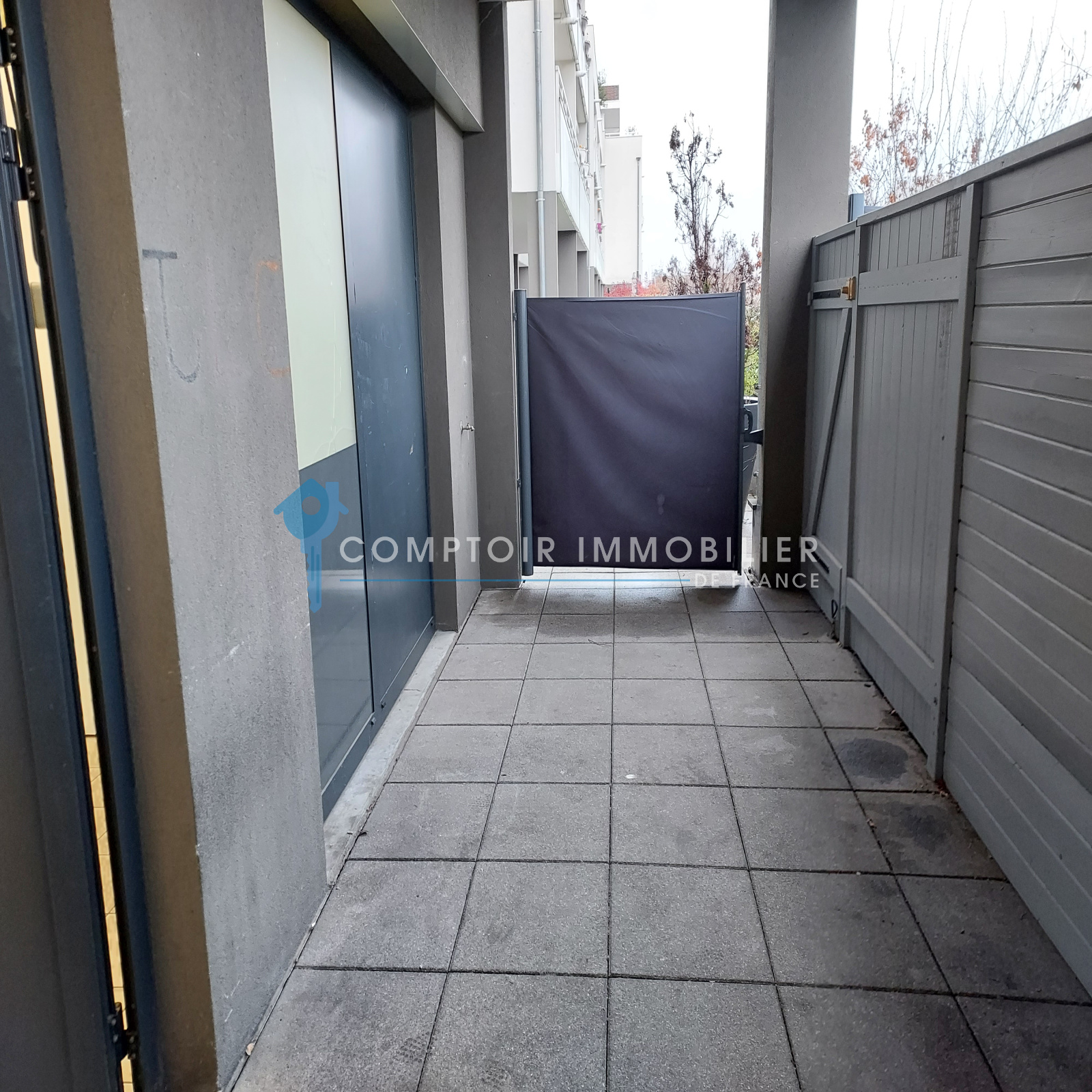 Avec 2 entrées : une côté rue passante et l'autre à l'arrière du batiment côté Terrasse.