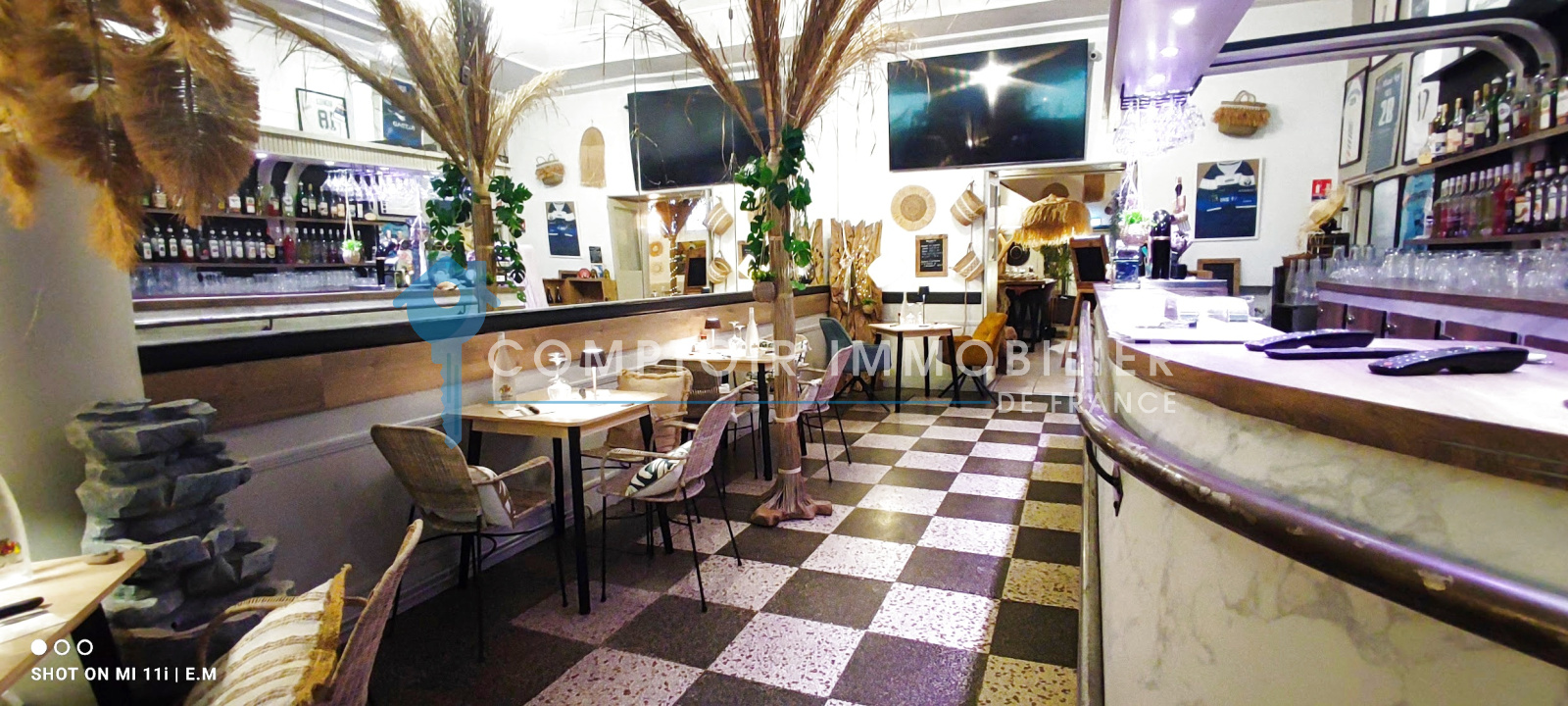 Le local de 200m2 comprend la salle, la cuisine, et le bar, une belle et spacieuse terrasse ainsi que 250 M2 de réserves et de caves.
