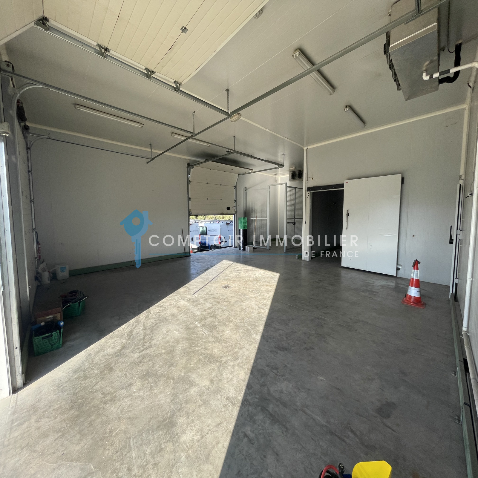 Sur l’autre partie, vous disposez de 3 portes de déchargement, idéalement poids lourds, frigorifiée en sus une salle de 50 m² négative. Le tout sous vidéo surveillance et alarme.