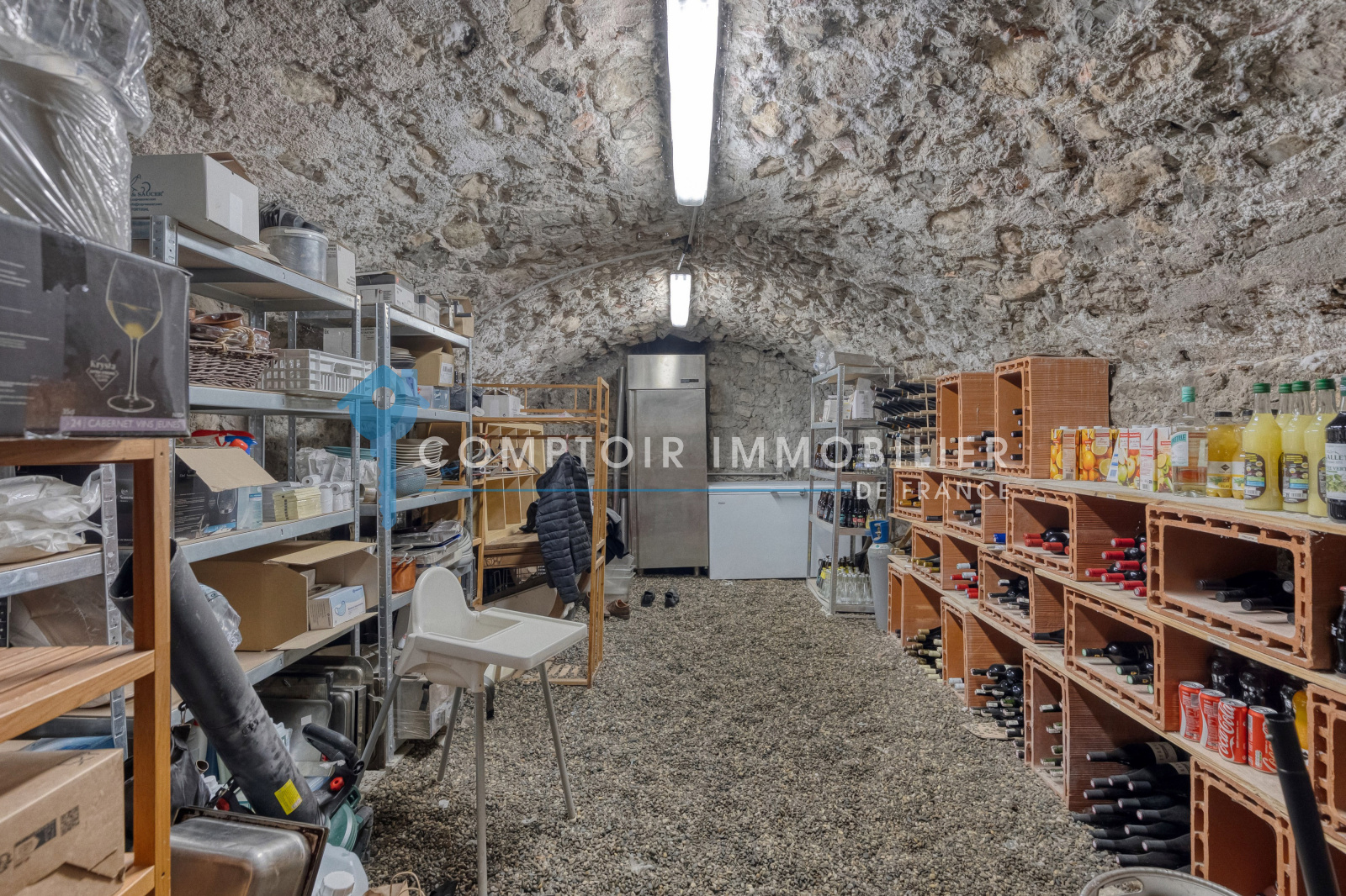 Sa cave voutée facile d'accès pour le stockage des denrées avec 1 armoire réfrigérée + 1 Congel.