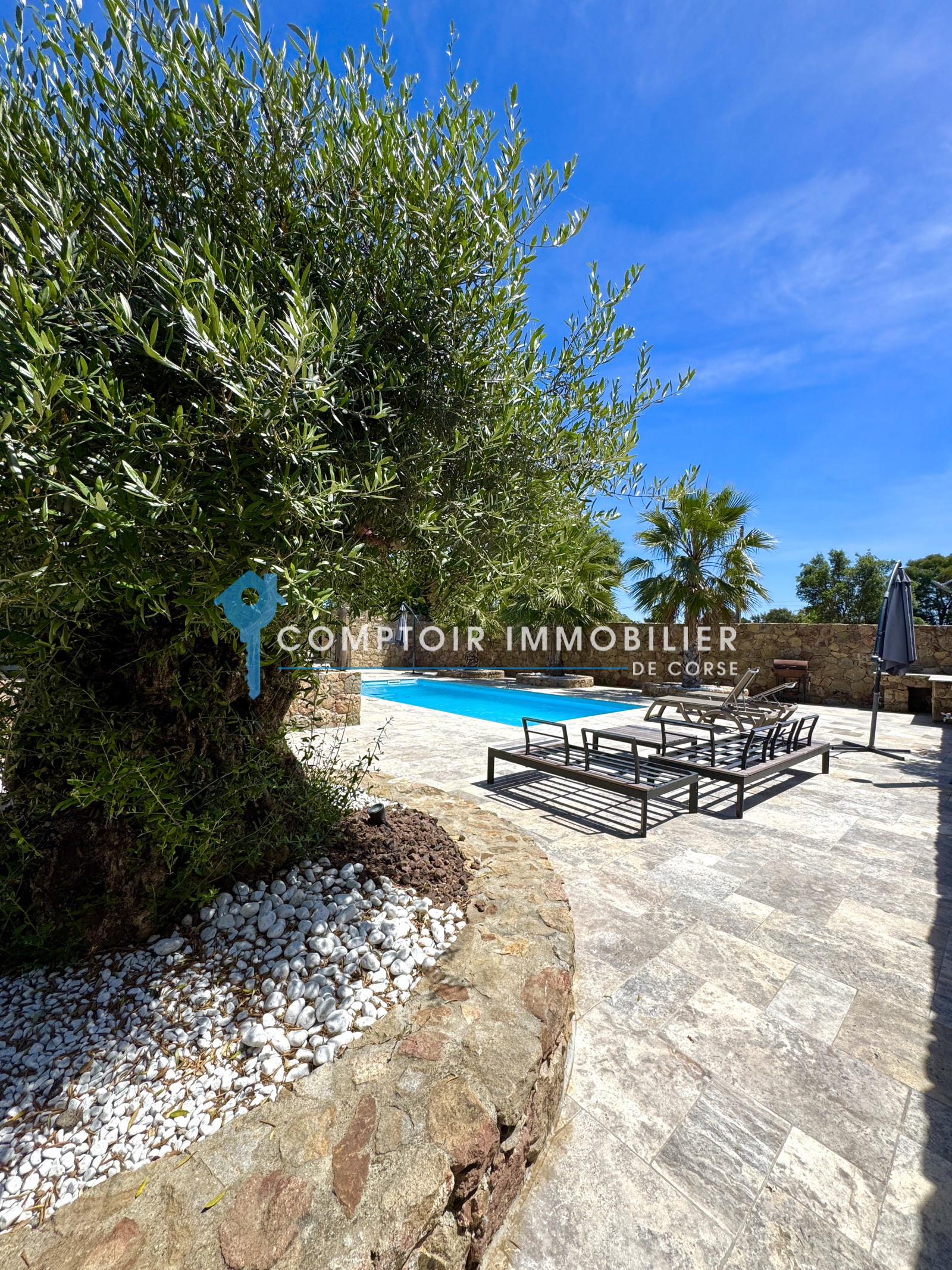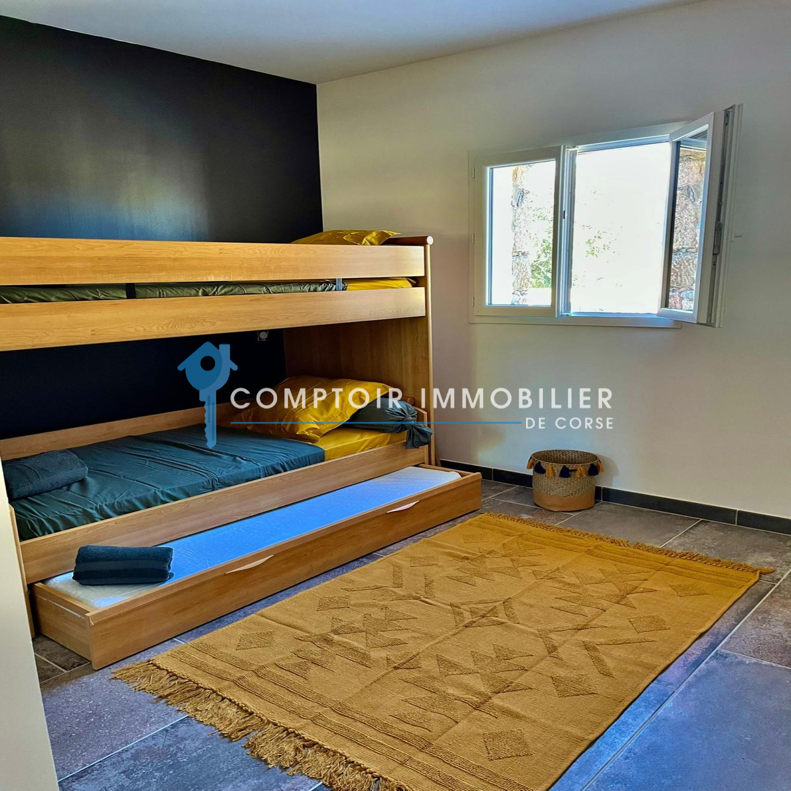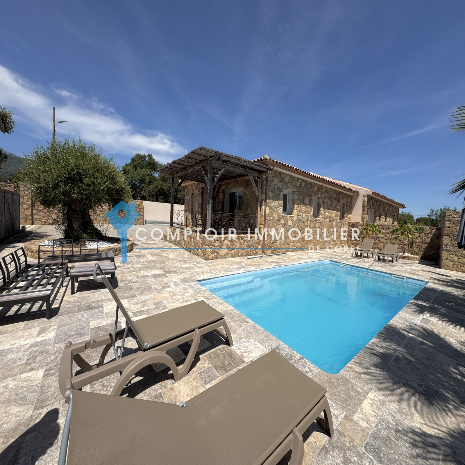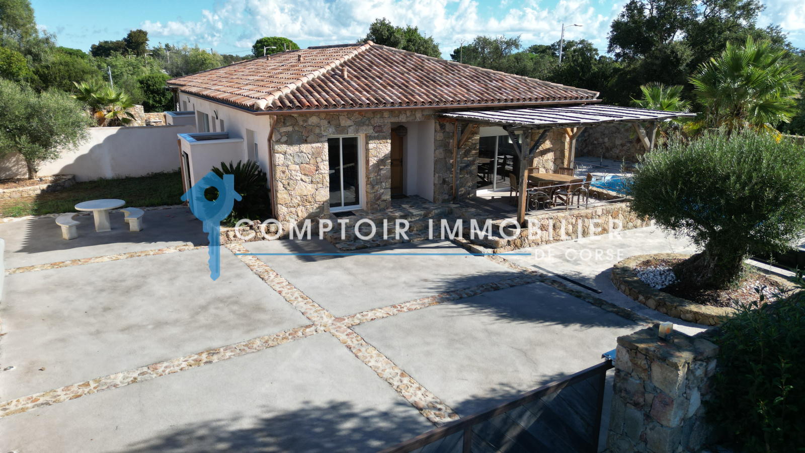 Cette villa T4 (3 chambres) de style bergerie d'une superficie habitable de 91 m2 habitable, habillée en pierres de taille sur une parcelle de 595 m2 non loin des premières plages, seulement 3 minutes en voiture de la plage de QUARCIONE.