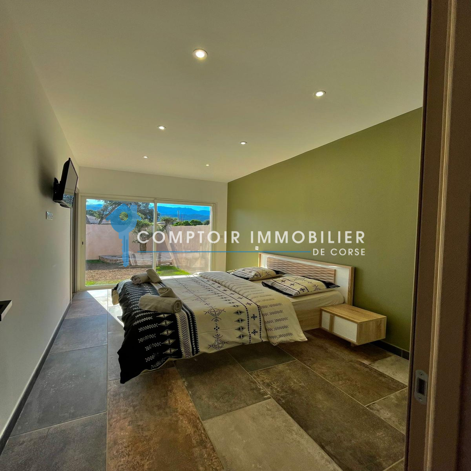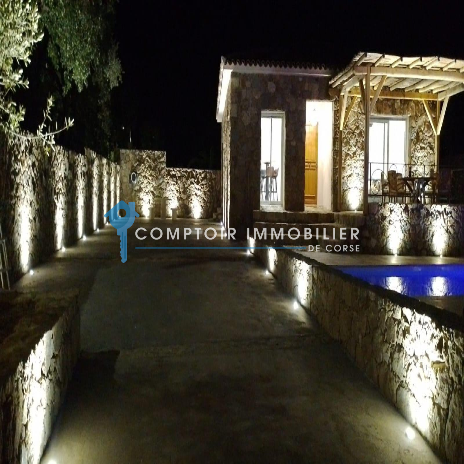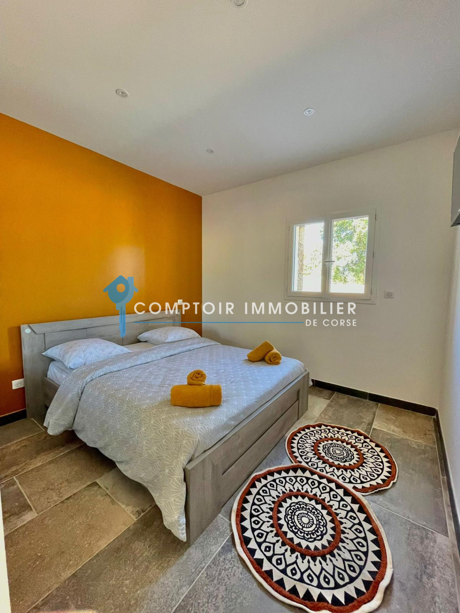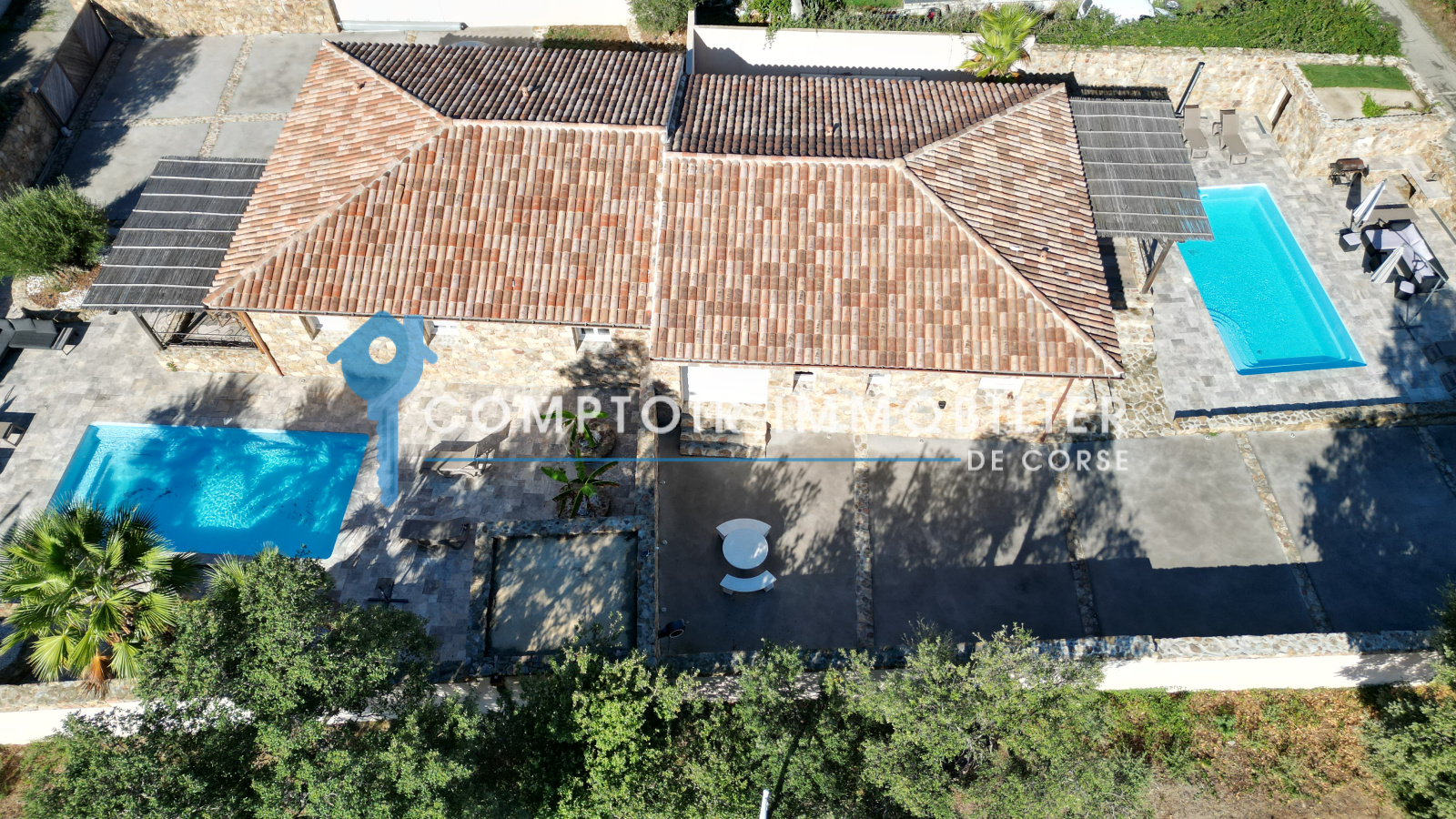 Cette villa T4 (3 chambres) de style bergerie d'une superficie habitable de 91 m2 habitable, habillée en pierres de taille sur une parcelle de 595 m2 non loin des premières plages, seulement 3 minutes en voiture de la plage de QUARCIONE.