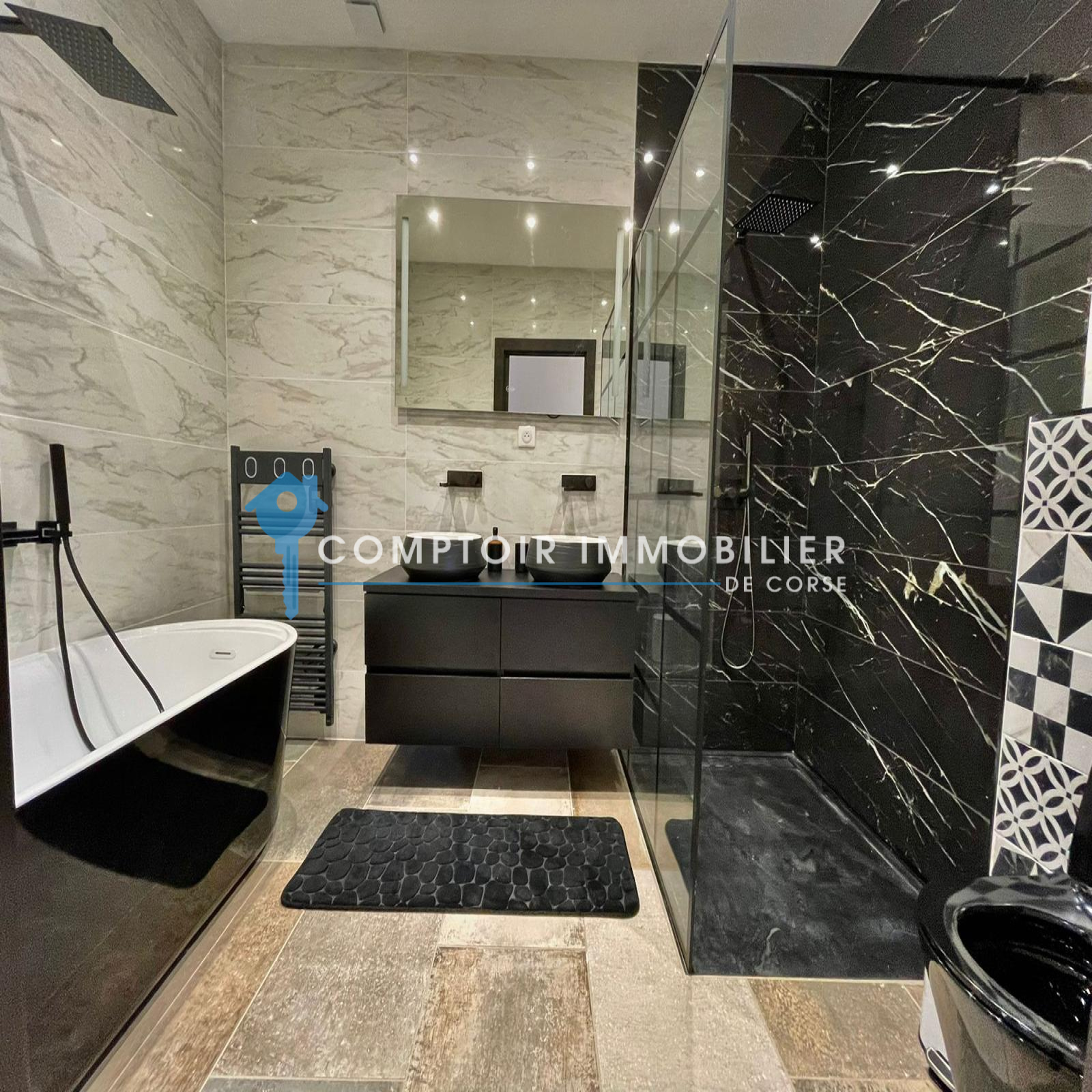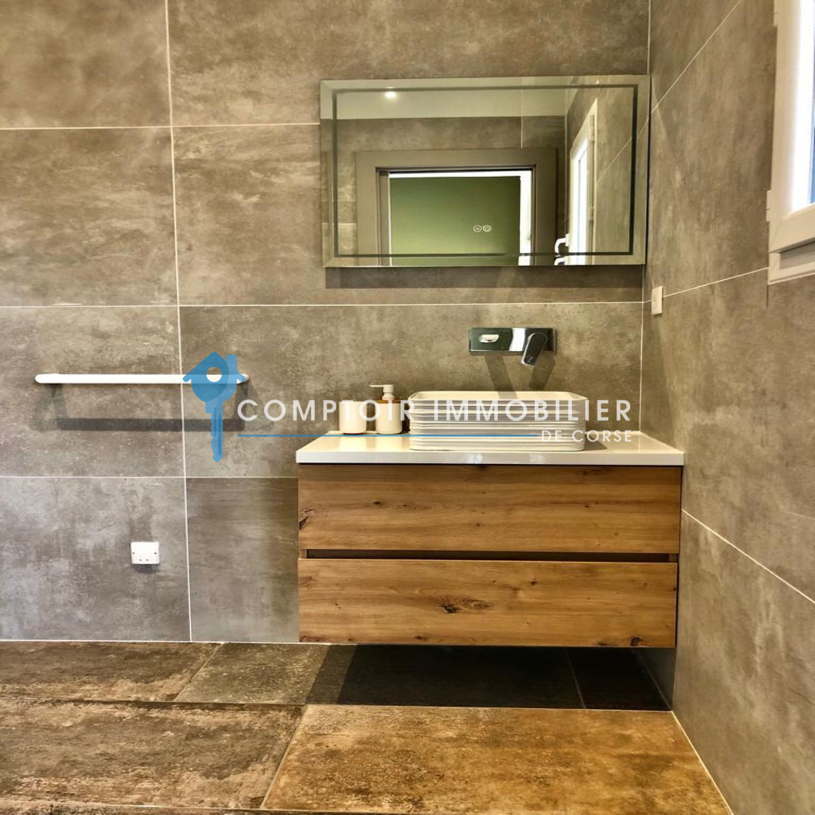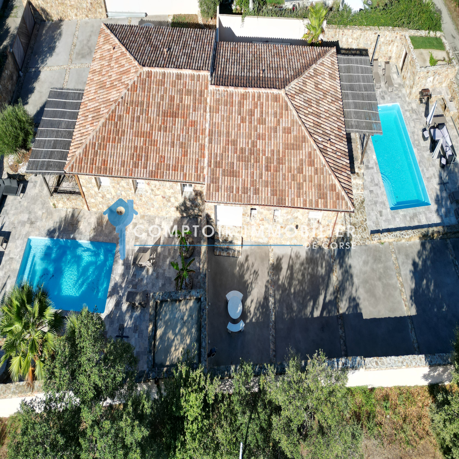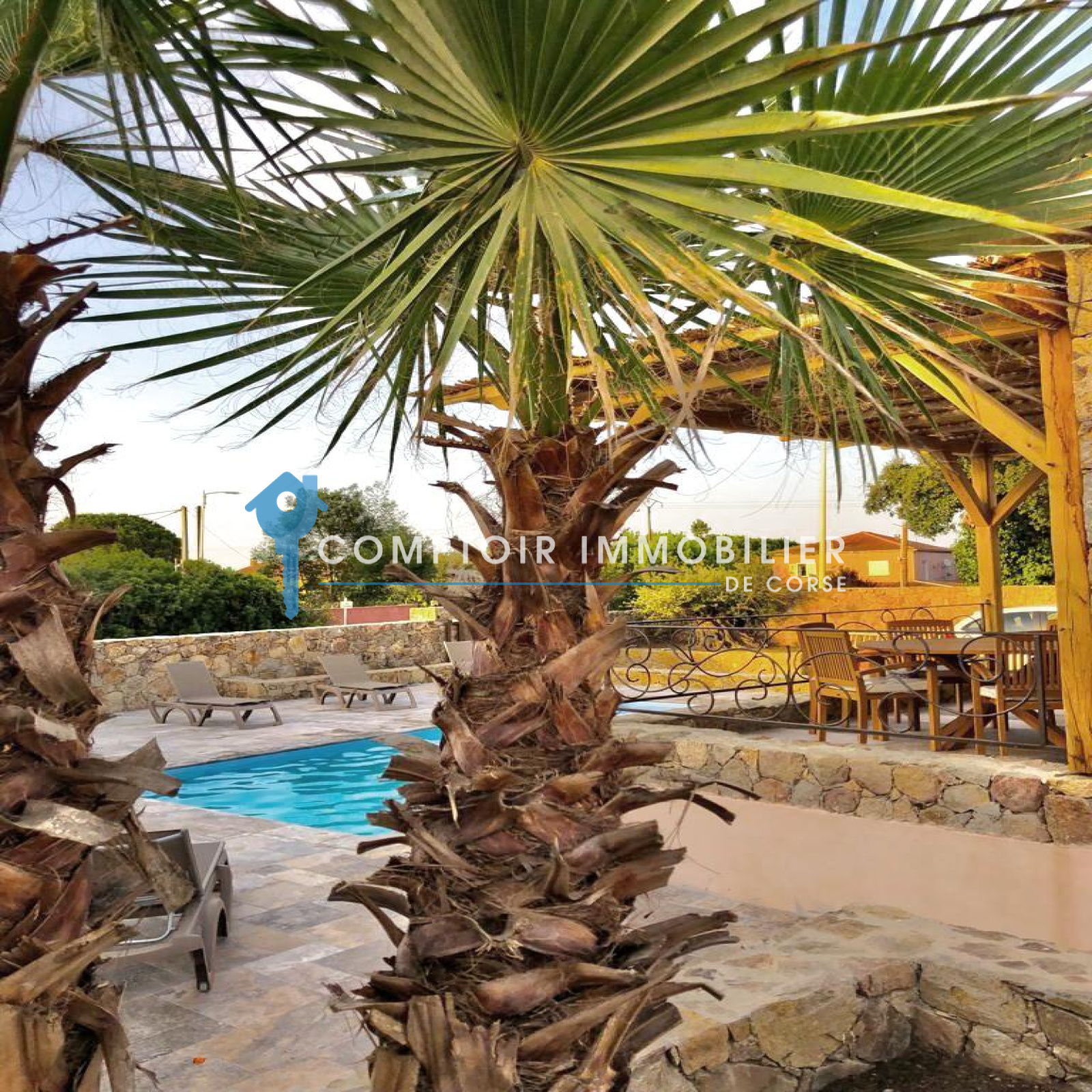 Cette villa T4 (3 chambres) de style bergerie d'une superficie habitable de 91 m2 habitable, habillée en pierres de taille sur une parcelle de 595 m2 non loin des premières plages, seulement 3 minutes en voiture de la plage de QUARCIONE.