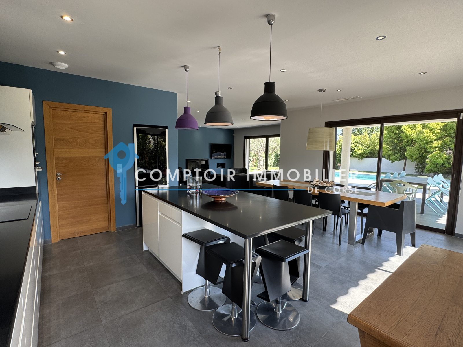Située dans un quartier résidentiel calme et prisé sur la commune de Ventiseri, à quelques minutes des plages, de toutes commodités ainsi que du port de plaisance de Solenzara, cette magnifique villa de plain-pied de type T5, allie confort, modernité et prestations haut de gamme.