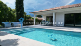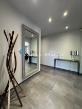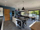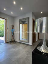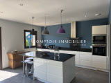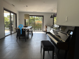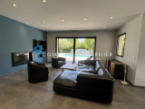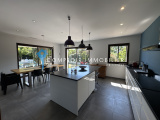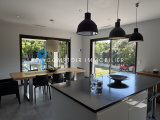 D'une surface généreuse, la villa se compose d'un vaste séjour lumineux avec un salon et salle à manger avec une cheminée moderne, d'une cuisine ouverte entièrement équipée avec goût, d'un cellier et d'une très grande buanderie.
