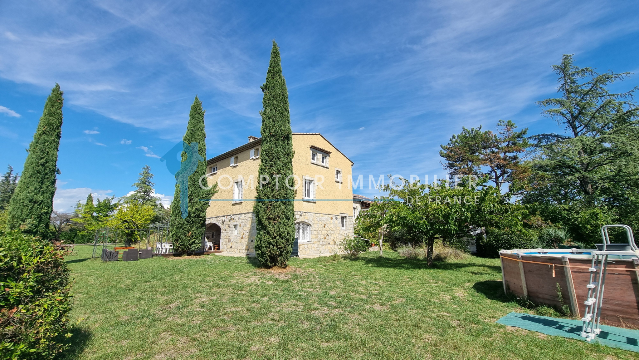 Eva BENOIT de l’Agence COMPTOIR IMMOBILIER de France « ARDECHE » vous propose cette grande Propriété de près de 400 m² habitables sur une belle parcelle de terrain arboré et clos de 4.065 m2.