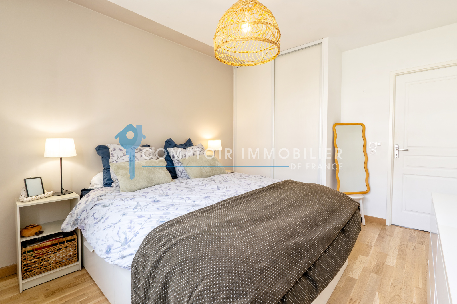 Le coin nuit offre deux chambres avec rangements, une salle d’eau, un petit dressing ainsi que des WC indépendants.