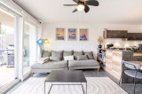 Le coin jour se compose d’un vaste séjour lumineux avec salon et cuisine ouverte équipée Cuisinella, donnant accès aux espaces extérieurs grâce à des grandes baies vitrées.