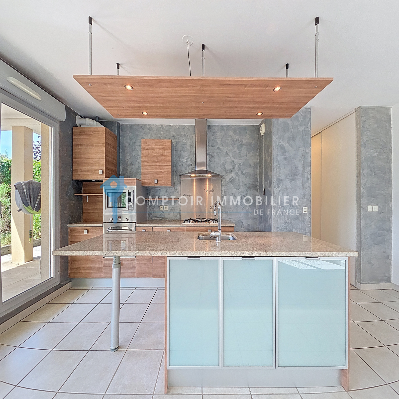 Il se compose d'un hall d'entrée avec placards, d'une belle pièce de vie composée d'une cuisine équipée ouverte sur le séjour + salle à manger totalisant 36m² et donnant sur le jardin, le coin nuit séparé ce compose de deux chambres de 11m² avec placards intégrés, d'une salle d'eau de 4m² avec deux vasques et d'un wc séparé avec point d'eau.