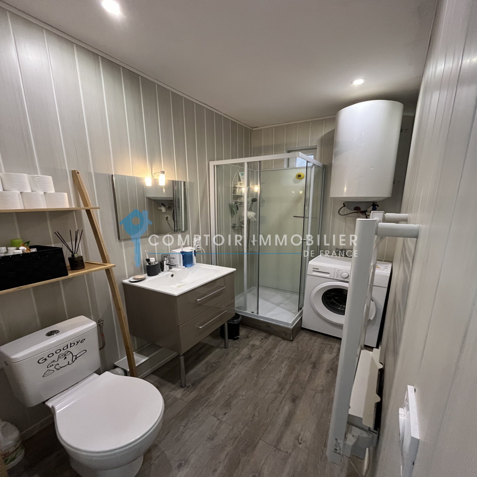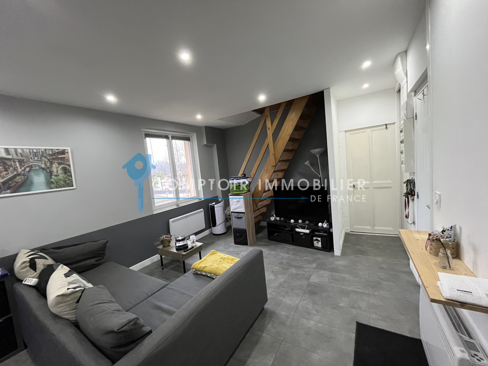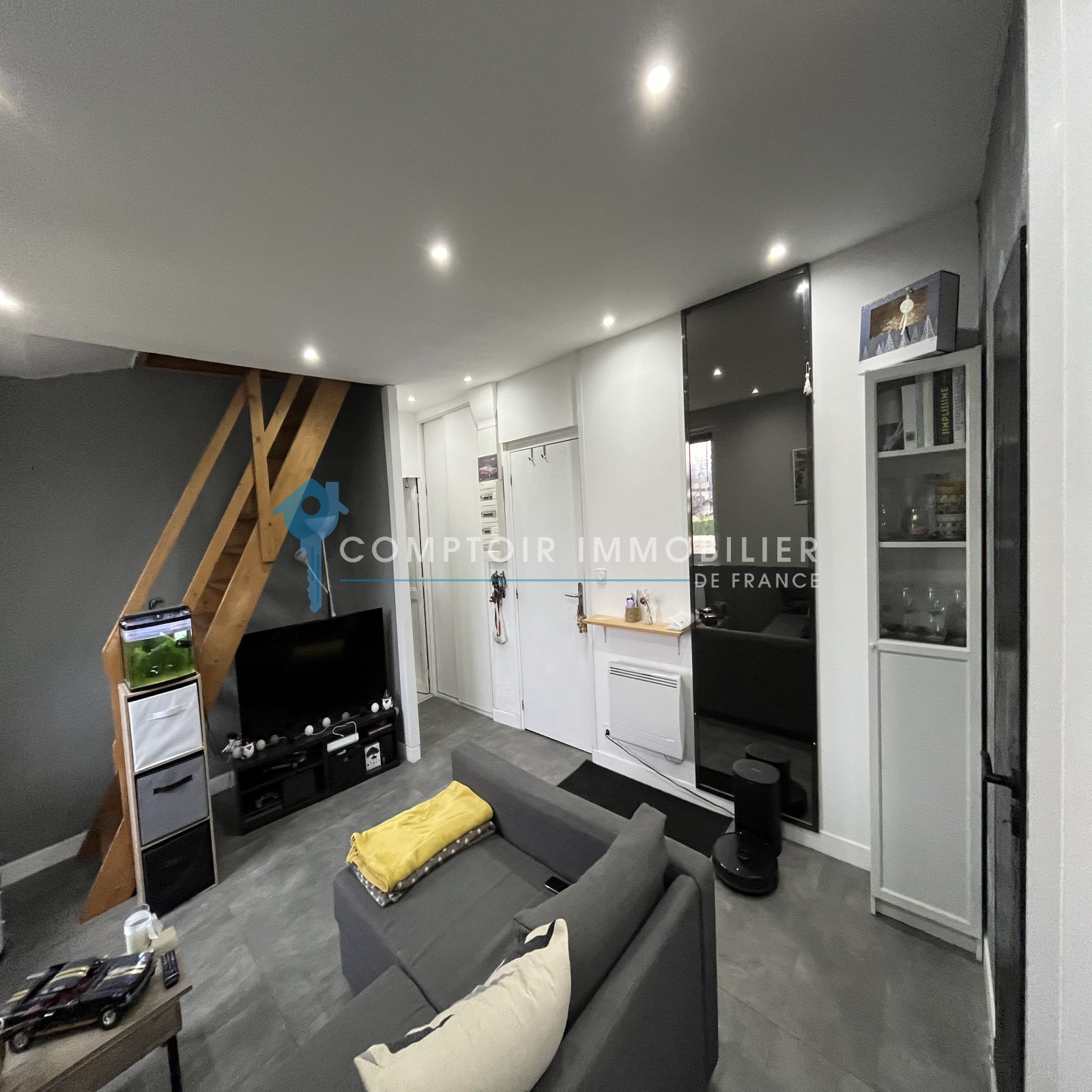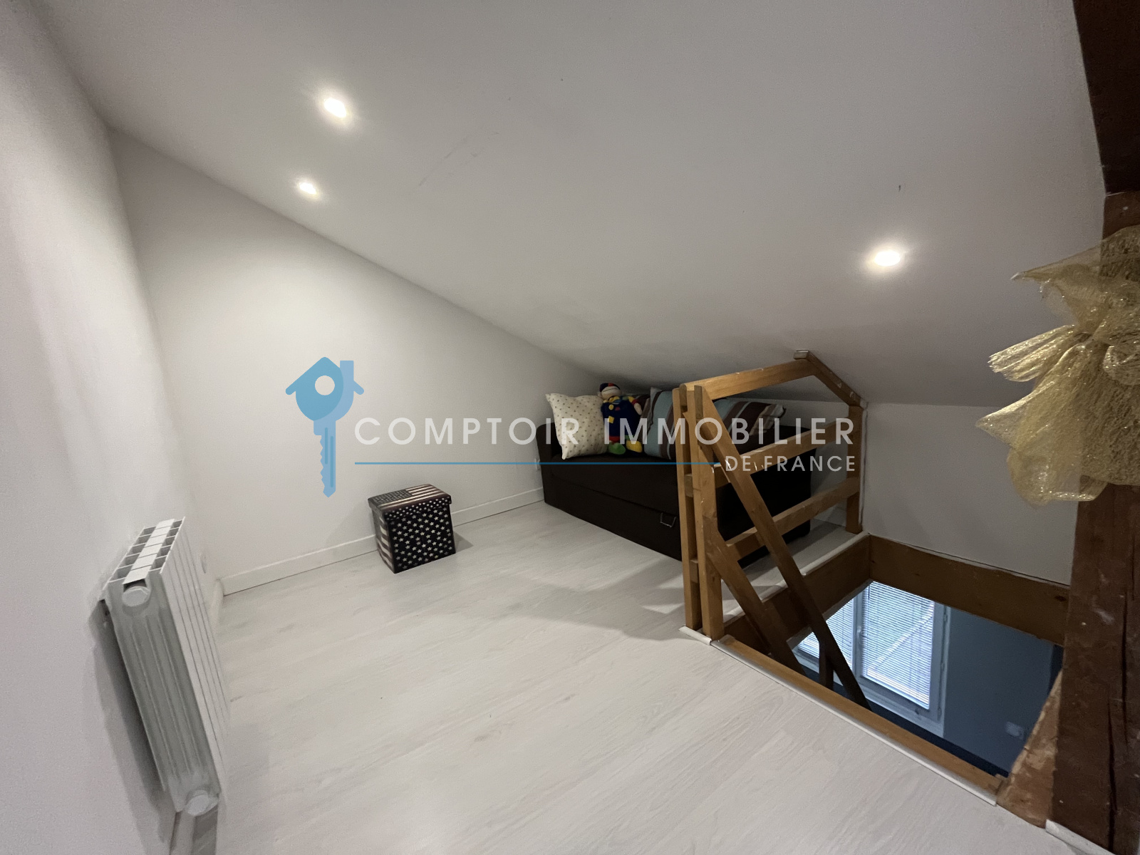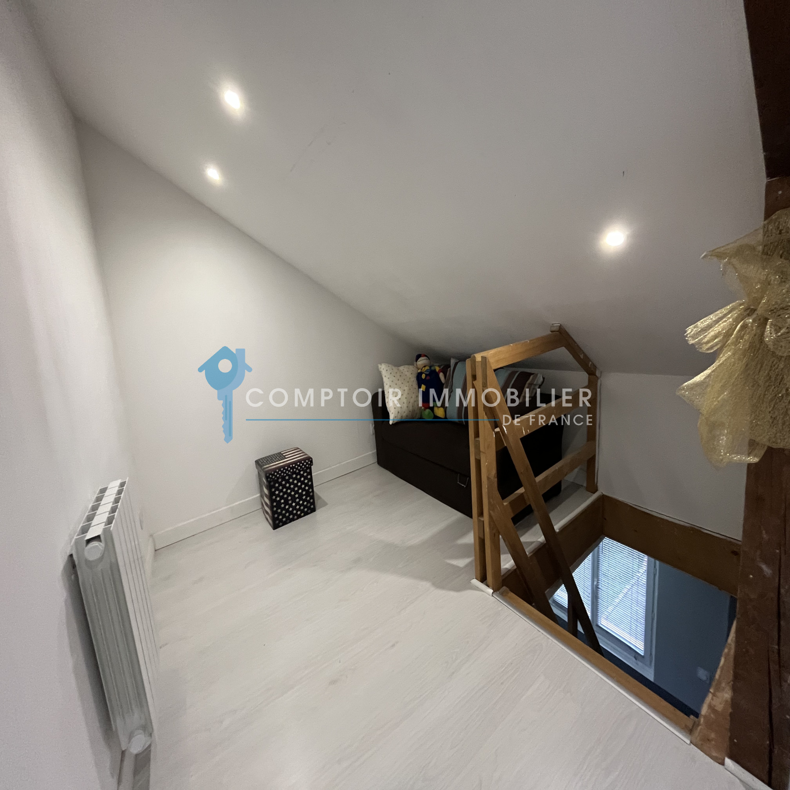 Séjour/Cuisine de 23m2 , Sdb/Wc de 4m2, Grande Chambre avec placard de 13m2. Espace sous combles aménagés de 20m2 au sol pouvant etre utilisés en bureau + chambre d'appoint.