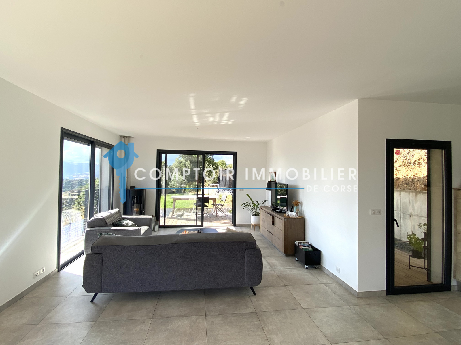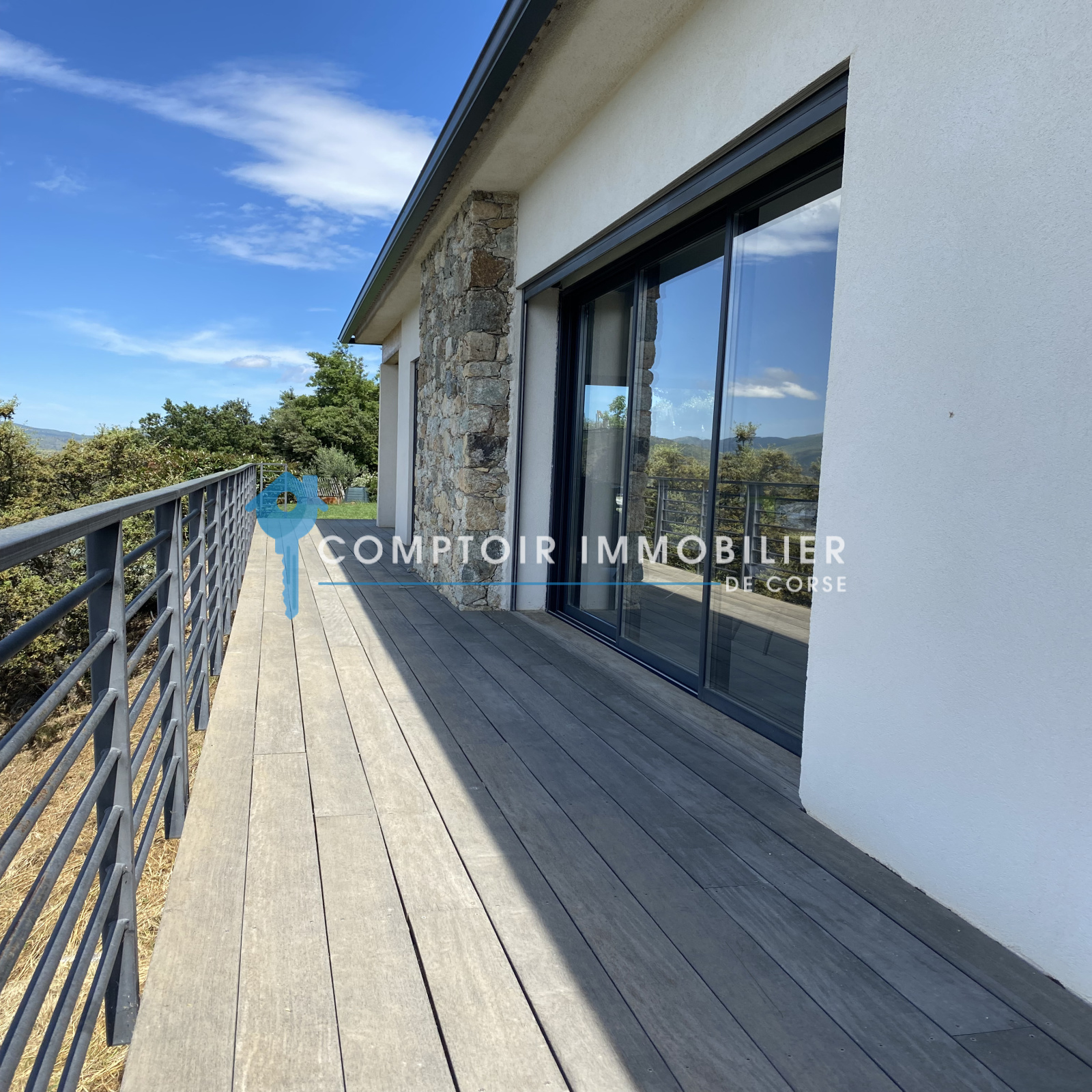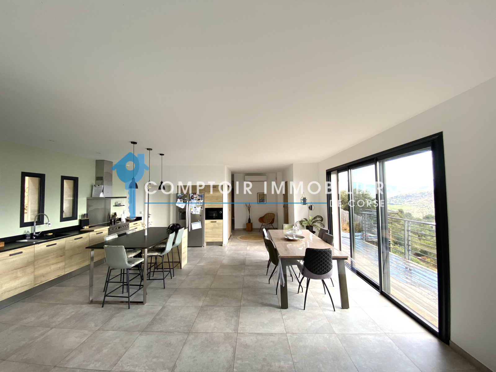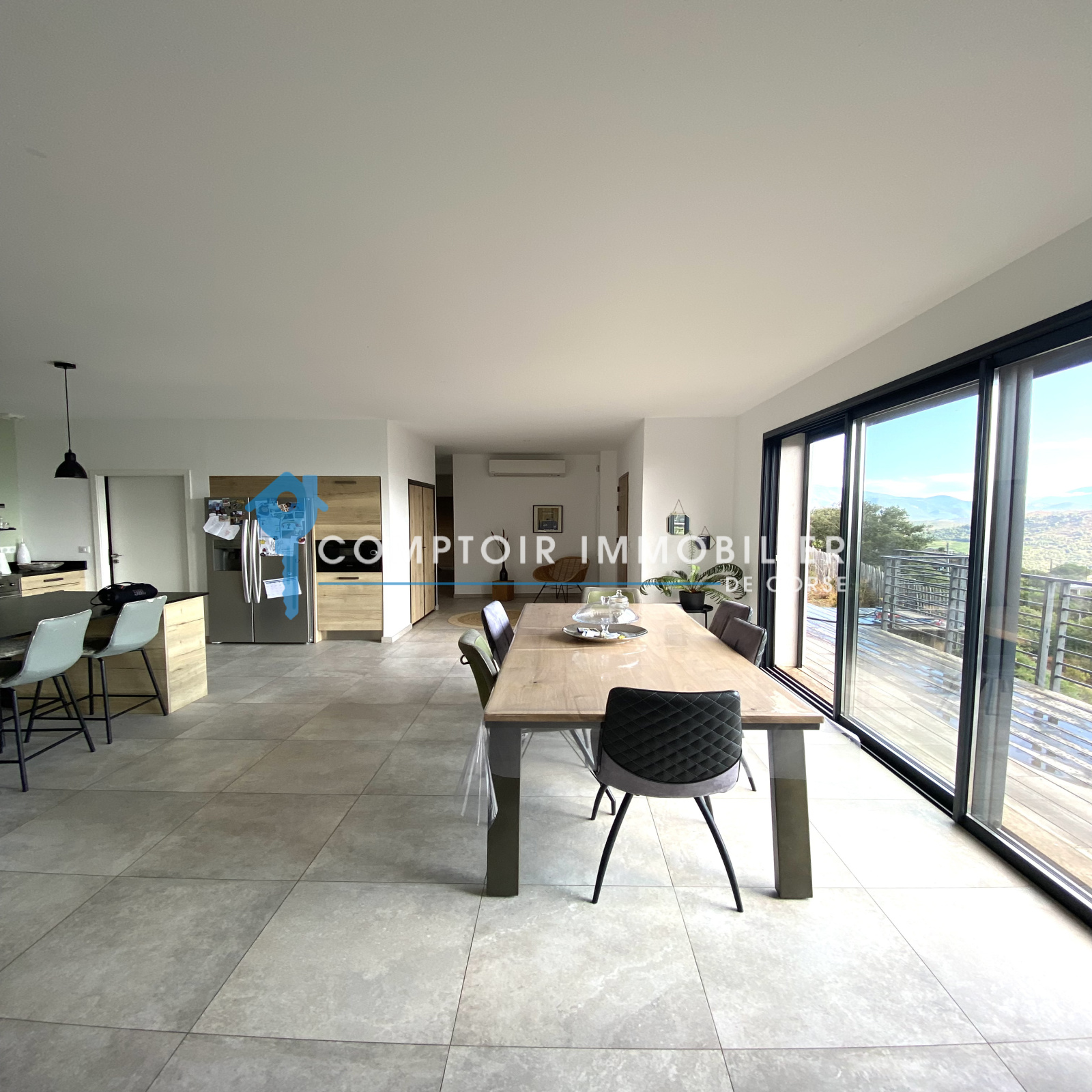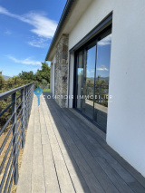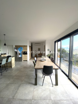 Villa contemporaine construite un terrain de 1828 m2. Elle offre une surface habitable de 160,85 m2, comprenant une spacieuse pièce à vivre avec cuisine ouverte sur le salon/salle à manger, 4 chambres, 2 salles de bain, toilettes séparées et un petit garage. À l'extérieur, une terrasse couverte permet de profiter du jardin en toute saison.