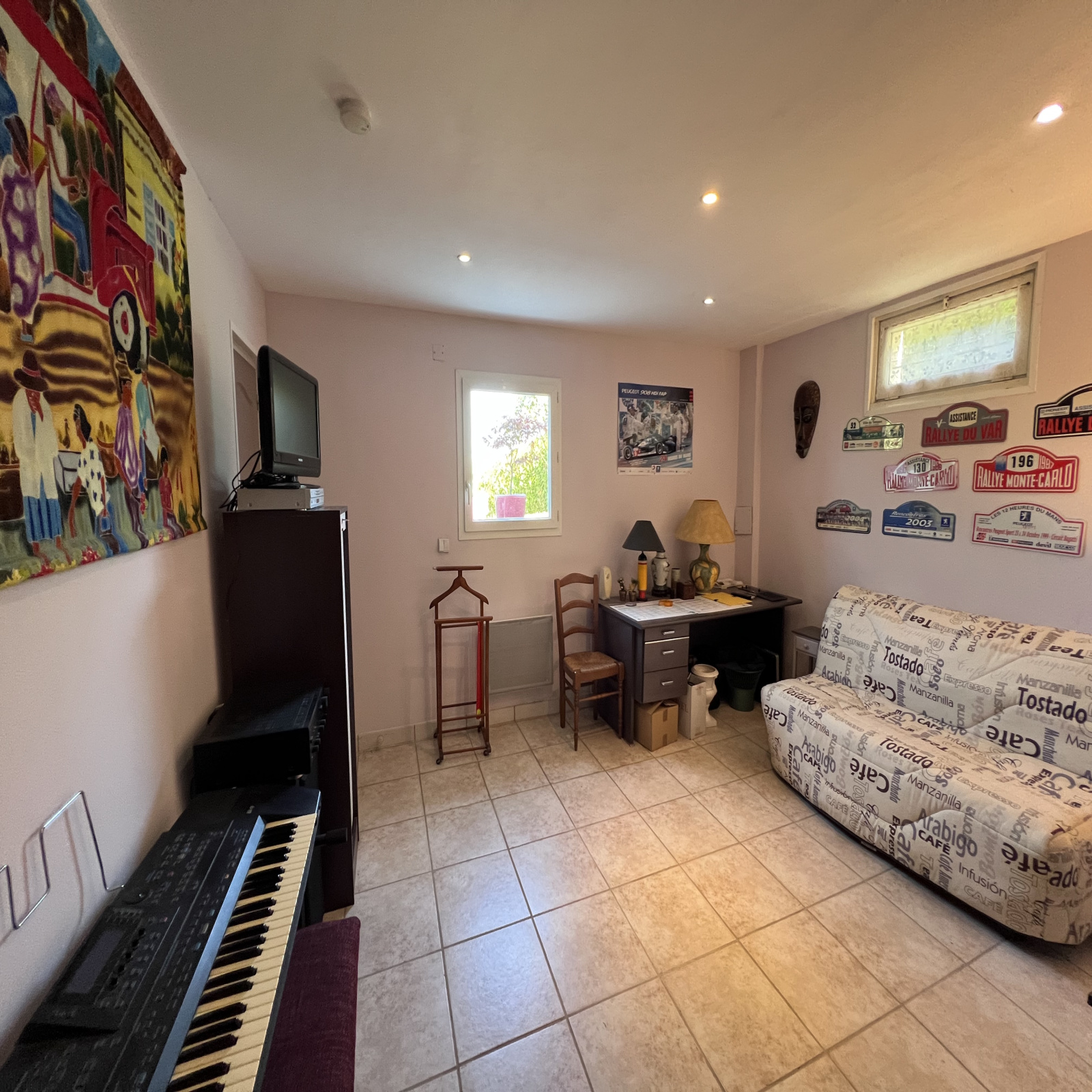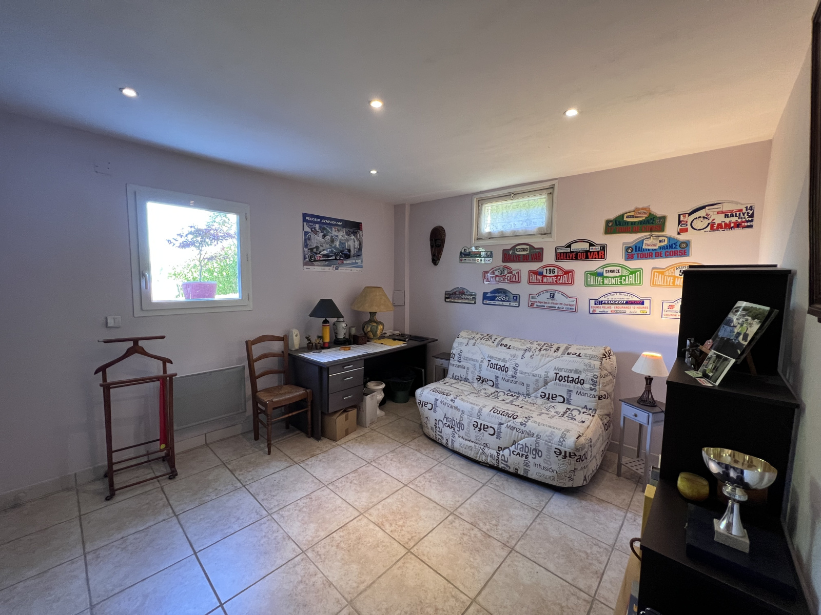 Au rez-de-jardin, une cuisine, une chambre (14 m²), une salle de douche avec WC, une buanderie et un grand garage avec espace atelier.