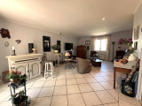 Elle se compose au rez-de-chaussée : d'une entrée sur le salon séjour de 43 m², une cuisine équipée séparée, un couloir desservant 2 chambres (13.88 m² et 11.57 m²), une salle de bains et un WC indépendant.