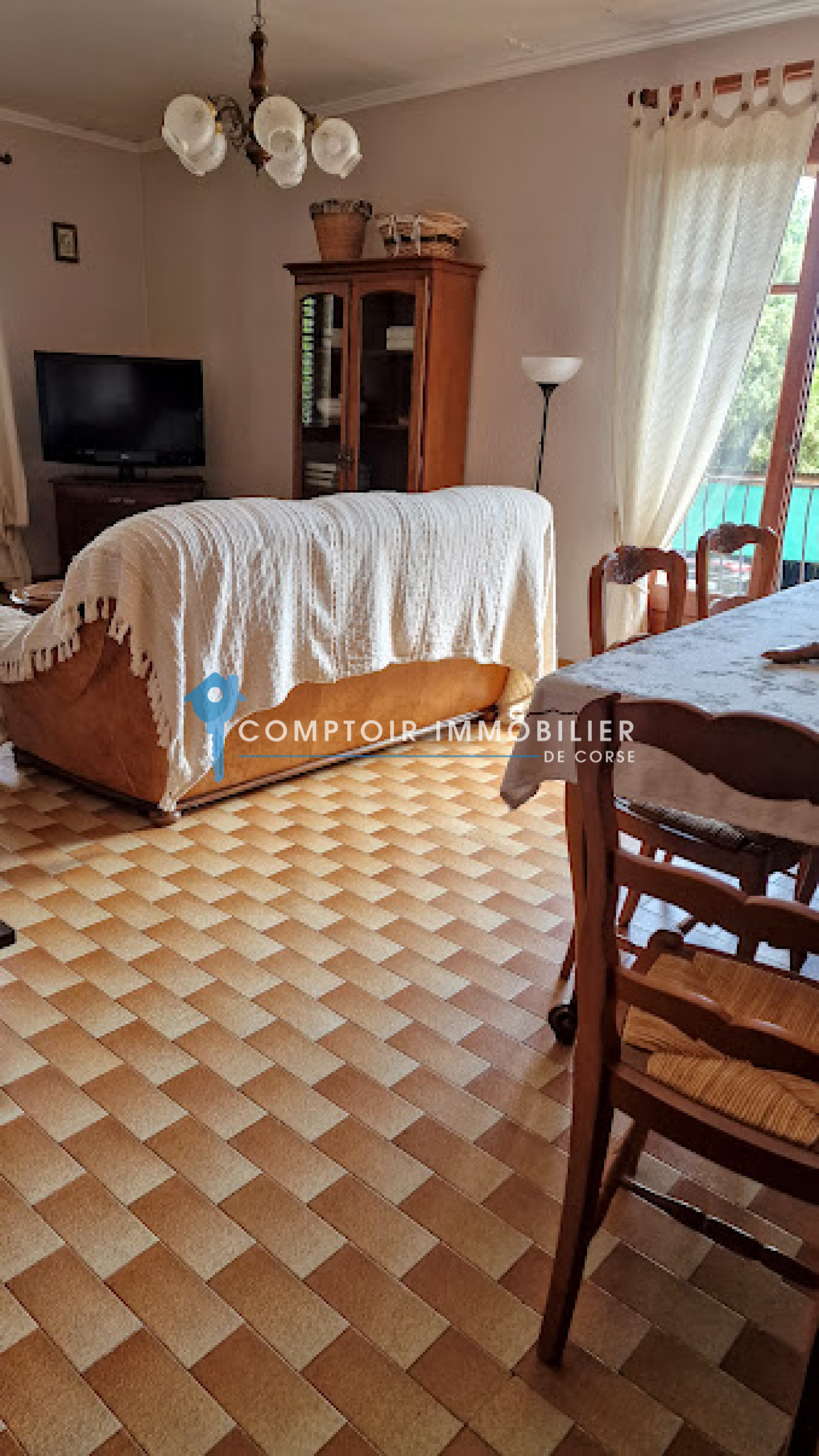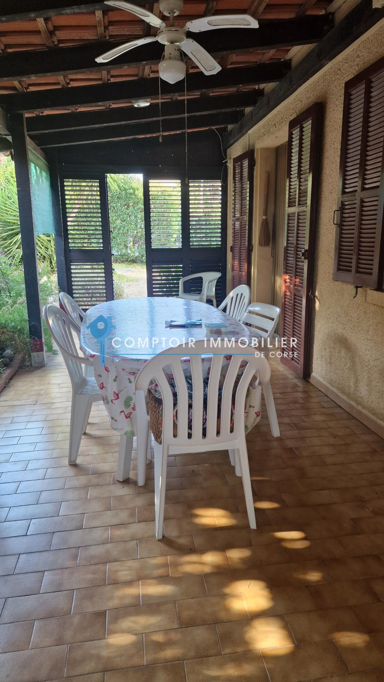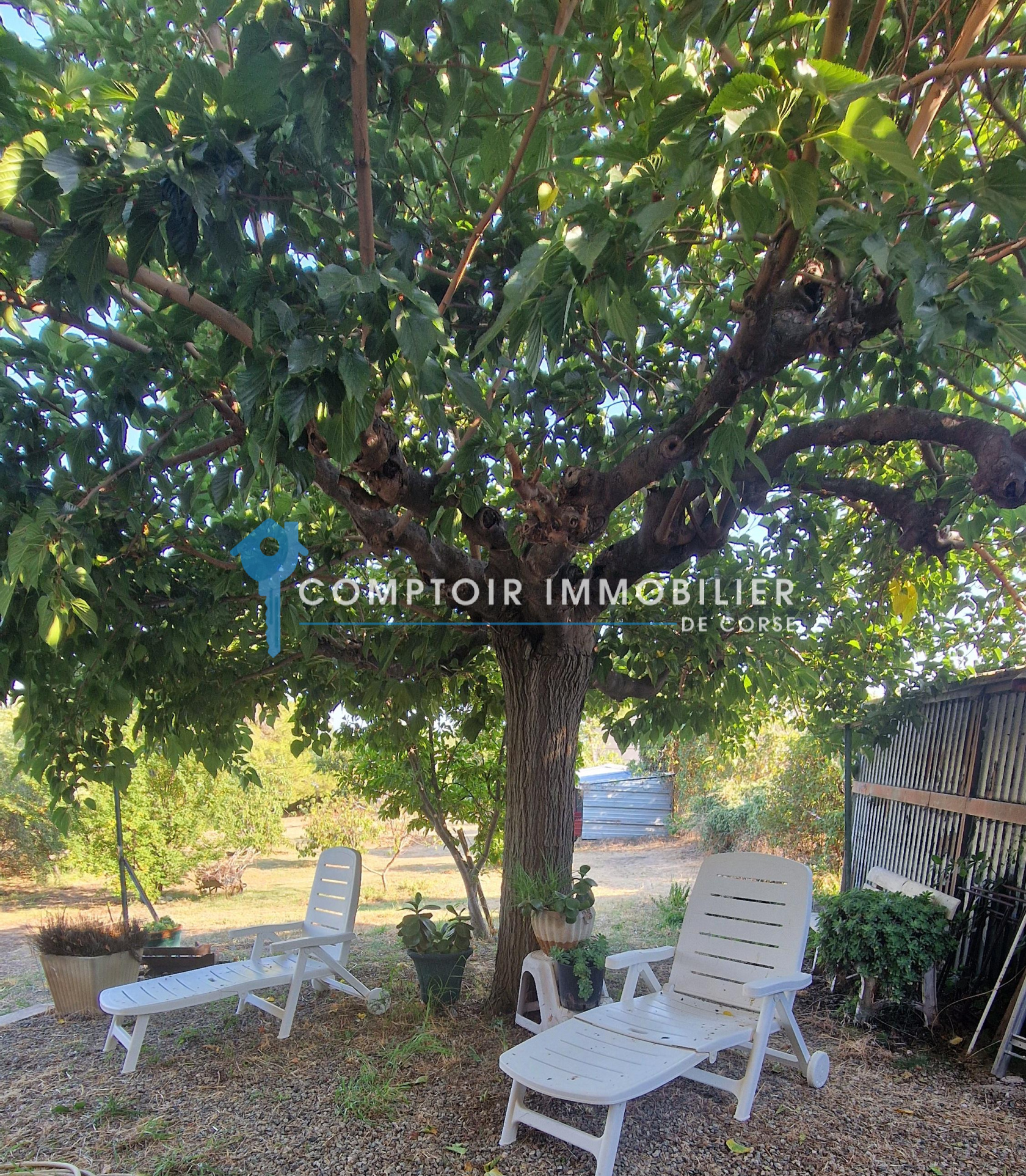 Maison familliale de 130m² entre Aléria et Ghisonaccia composée d'une cuisine fermée, d'un salon/salle a manger, d'une chambre au RDC, salle de bain et WC, d'une véranda avec un barbecue donnant sur un trés grand terrain arboré de 2000m² avec garage et cabanon.