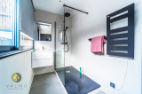 À l’étage : un dégagement, 4 chambres avec rangements dont une suite parentale de 19 m² avec sa salle d’eau/wc, une salle-de-bains avec baignoire balnéo et un wc.