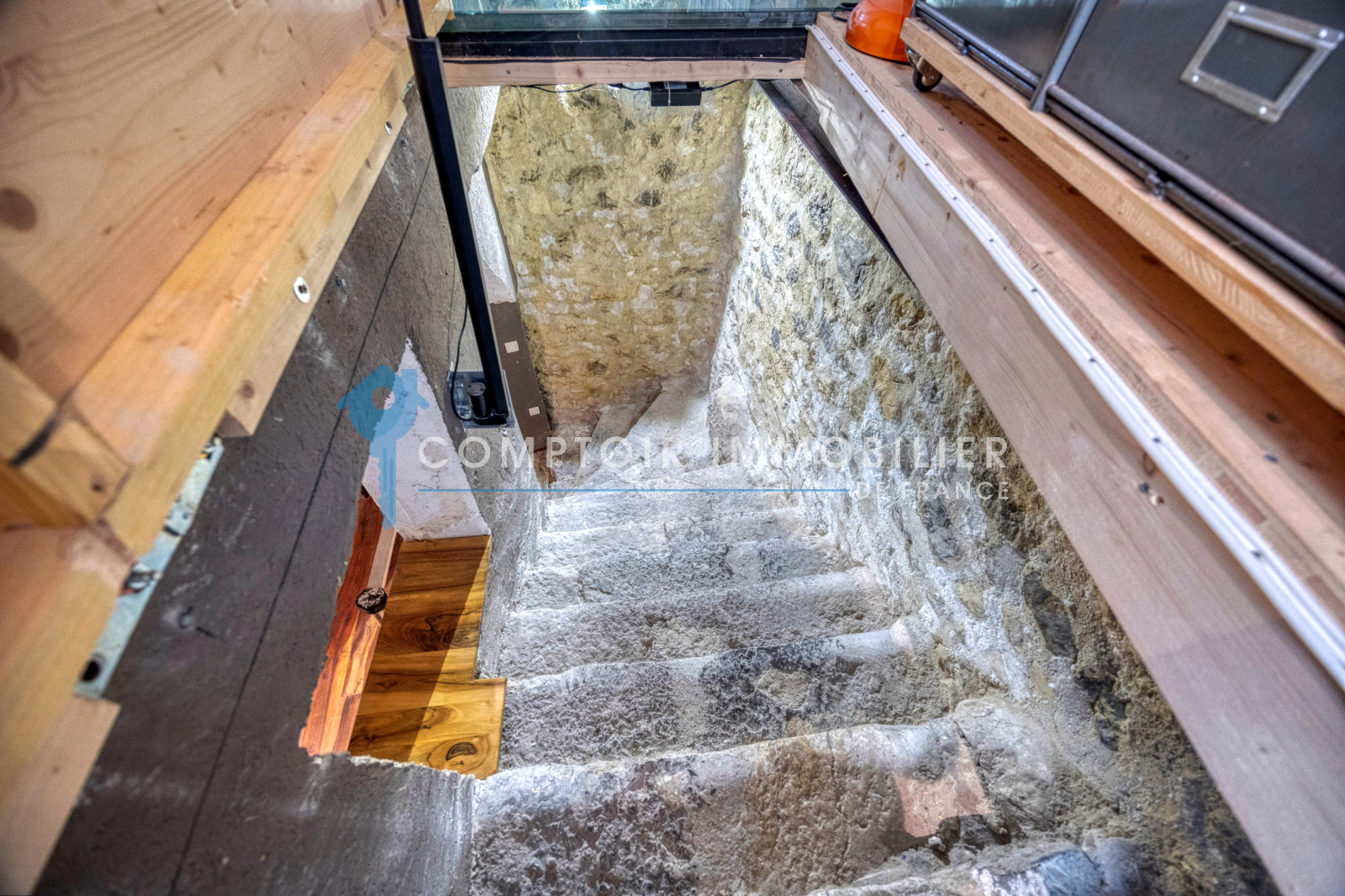 Depuis la pièce principale, vous pourrez accéder par un escalier avec ouverture automatique à une belle cave voutée de 17m2 chauffée pouvant dont être utilisé en pièce annexe.