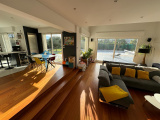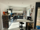 Au rez de chaussée, grand hall d'entrée de 10m2 donnant sur une pièce de vie avec cuisine de 55m2 avec de grandes ouvertures vers l'extérieur et la piscine. Un cellier/buanderie de 4m2 proche de la cuisine.