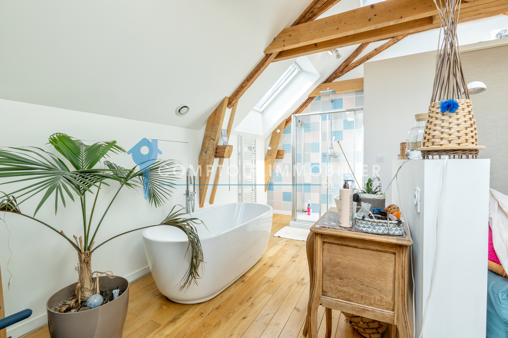 Au dernier niveau, une suite parentale sous pente, avec salle d'eau et dressing, ainsi qu’une chambre d’amis.