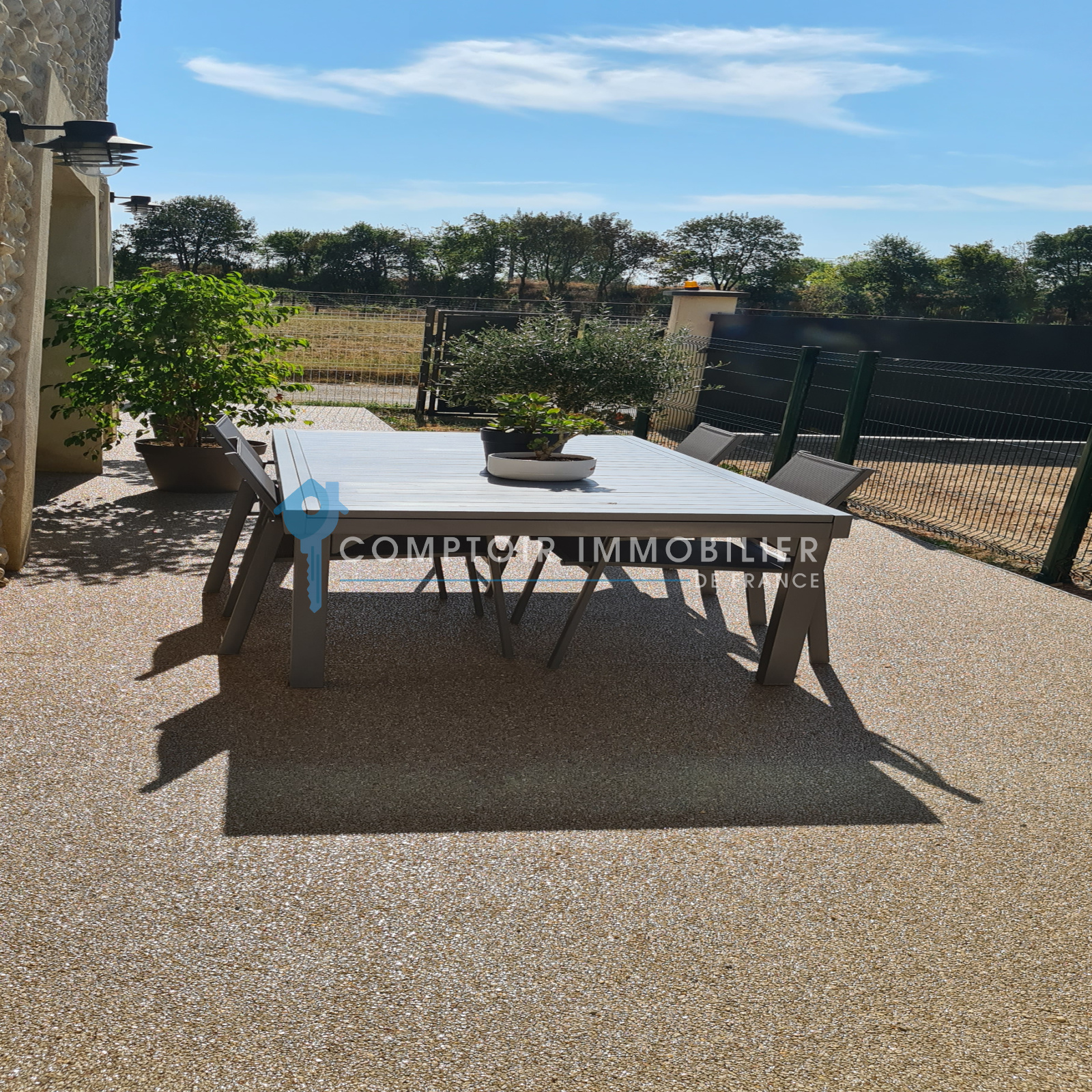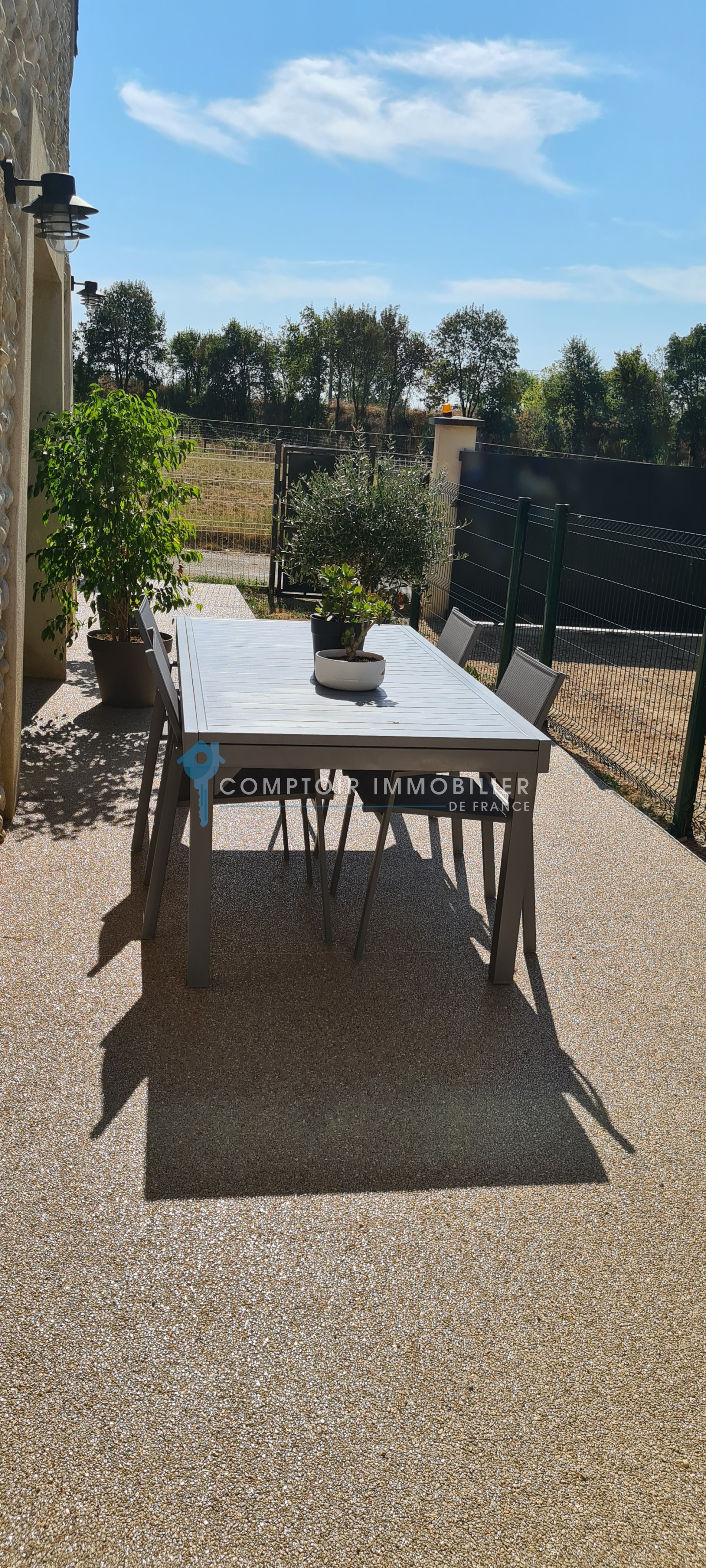 A l’extérieur : une jolie terrasse en « Gravicolor » vous accueillera pour vos belles soirées d’été, le bien est complété d’une annexe de 20m² avec une partie couverte pouvant acceuilir deux voitures.
