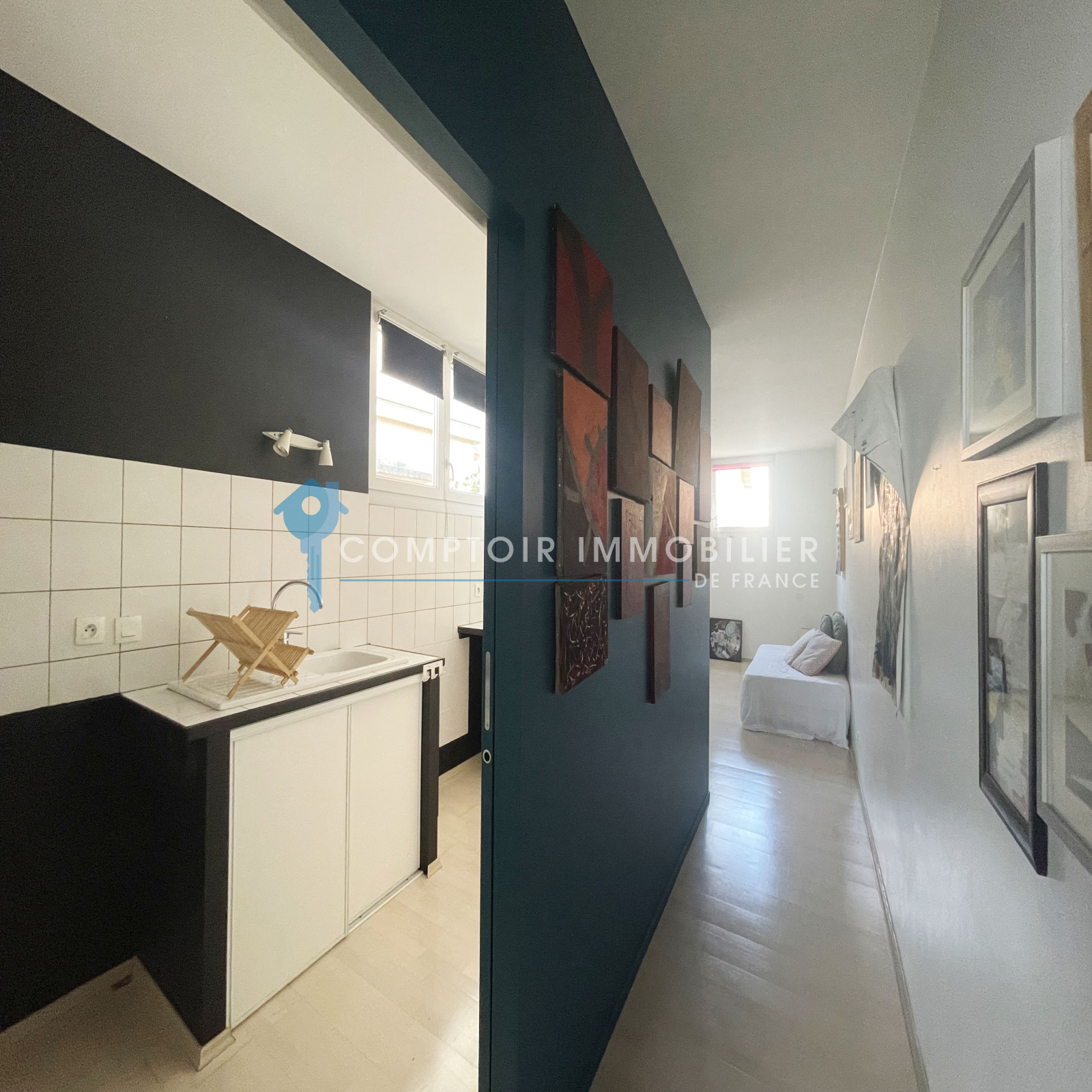 Tout d'abord, un appartement d'environ 41m² en rez-de-jardin baigné de lumière grâce à ses larges ouvertures et l'aspect traversant de ses espaces. Très chaleureux aussi, le parquet véritable de la chambre réchauffe l'ambiance, les matériaux de qualité et les portes travaillées par un ferronnier d'art apportent une identité unique.