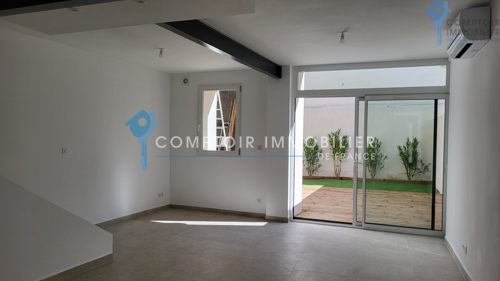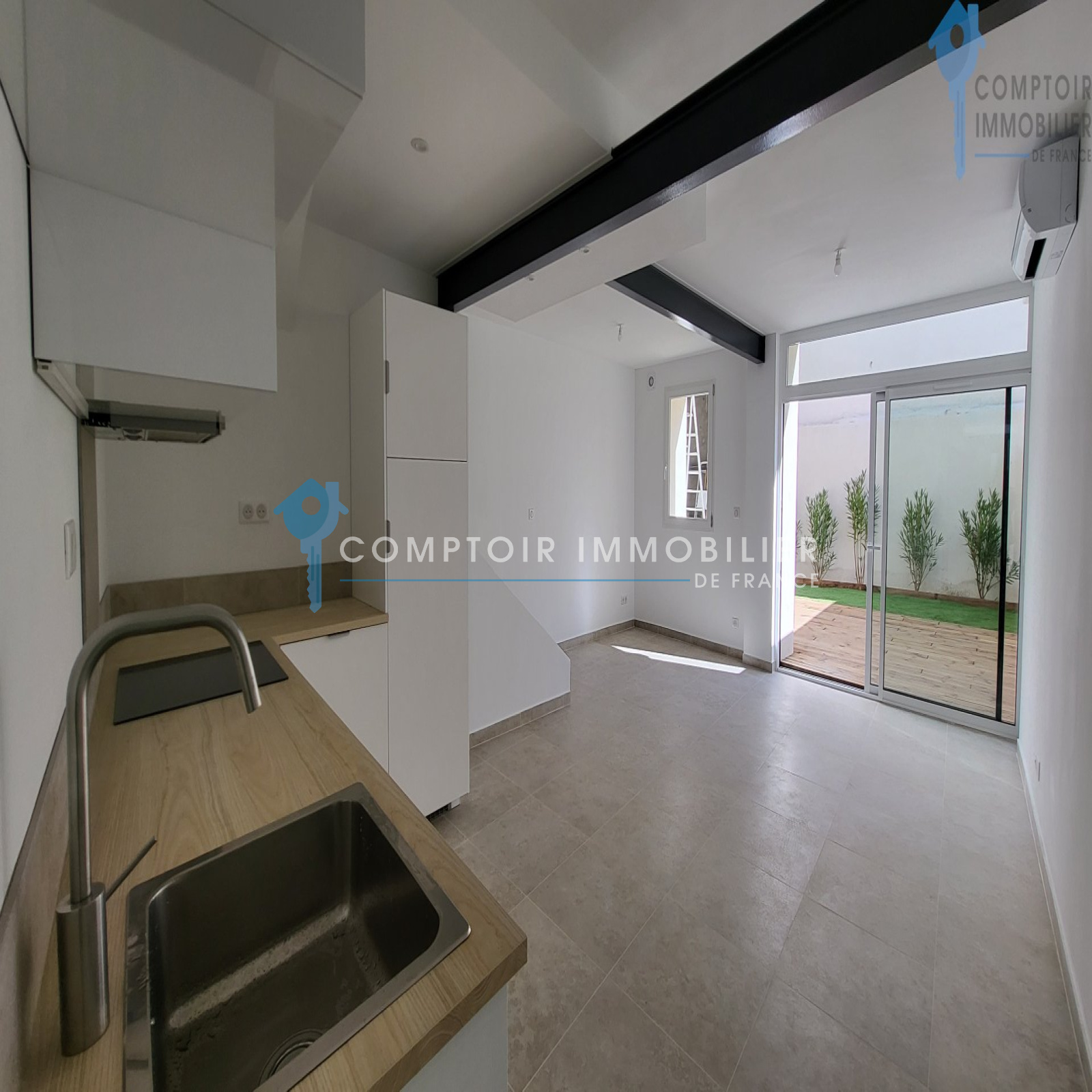 LUNEL VIEL - Attention, coup de coeur ! Au calme, maison de ville entièrement refaite à neuf, de 85m² habitables, agencée sur deux niveaux et entièrement climatisée pour votre confort, elle dispose de trois chambres, d'une salle de bains avec double vasque, douche italienne et baignoire, d'une magnifique pièce à vivre / cuisine ouvrant sur la terrasse. Une rénovation de grande qualité avec de beaux matériaux. Un garage complète ce bien rare. Bien sous garanties décennales. Ne passez pas à côté !