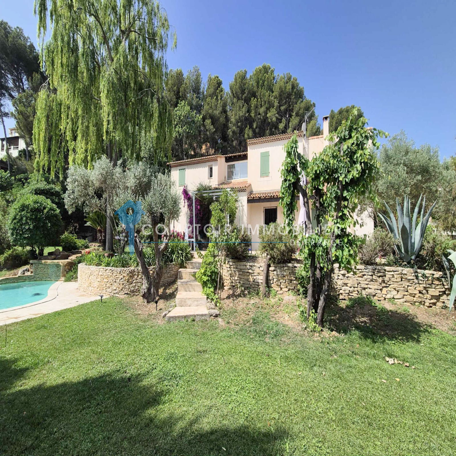 Nichée dans un environnement paisible et verdoyant, cette propriété d’exception de 222 m² habitables édifiée sur un terrain paysager de 1 940 m² incarne à la perfection l’harmonie entre charme provençal, élégance contemporaine et confort de vie.
