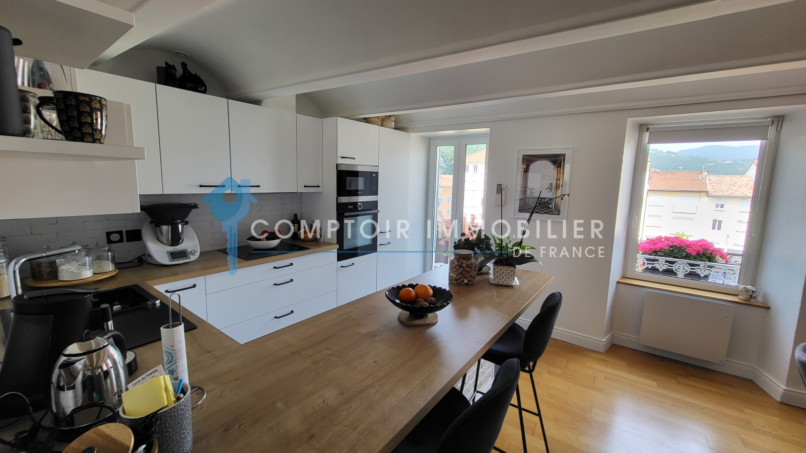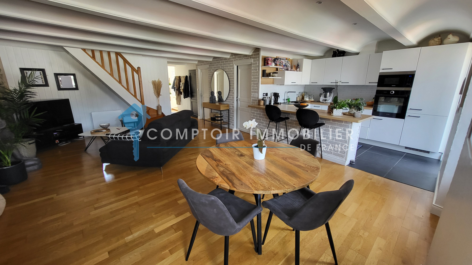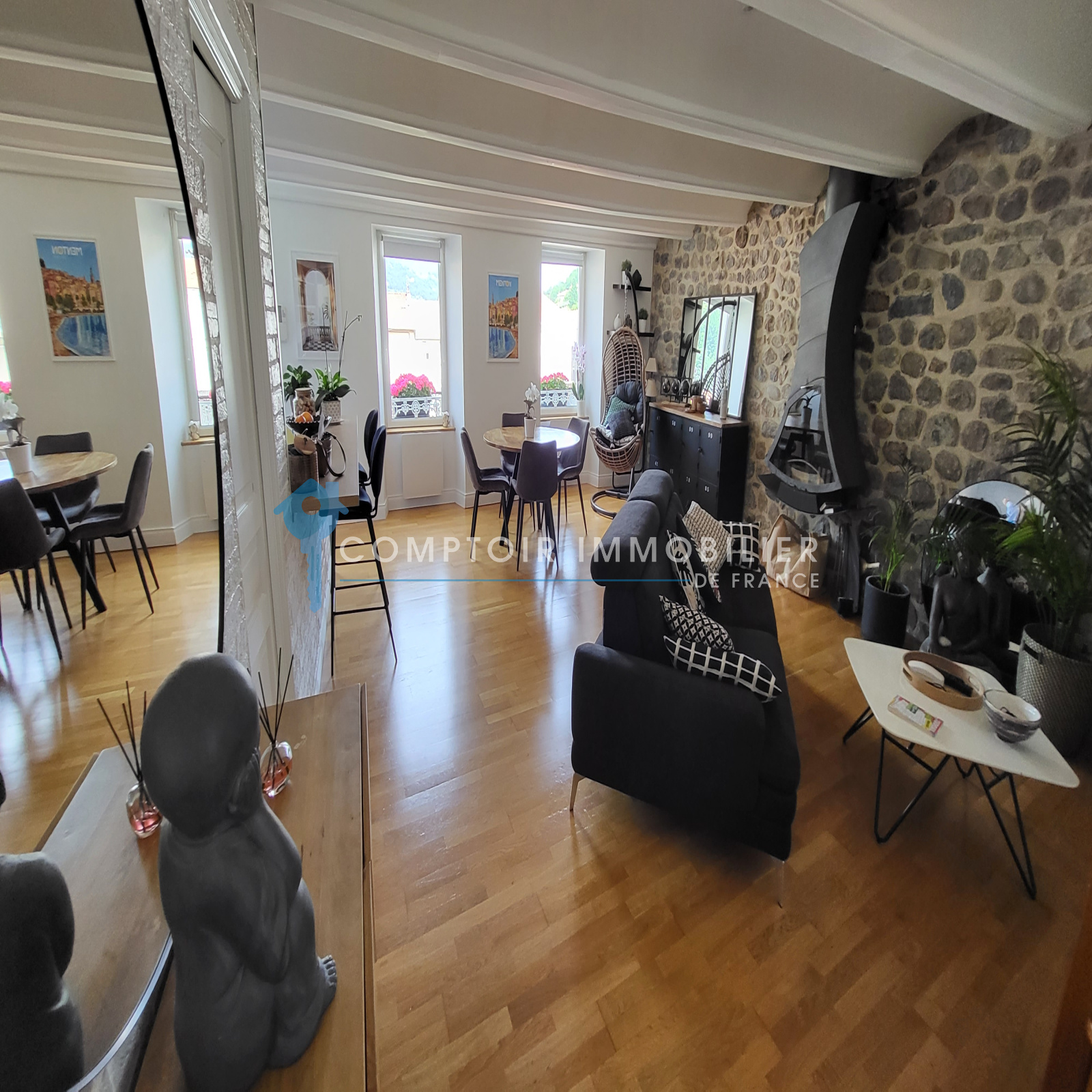 Comptoir immobilier de France, propose à la vente ce splendide appartement duplex meublé de style contemporain refait à neuf, situé au centre du village dans une petite copropriété de trois propriétaires au troisième et dernier étage sans ascenseur ! Vous n’avez plus qu’à posez vos valises et profitez de son confort ! Dès son entrée vous serez subjugué par sa généreuse pièce de vie ouverte de 41m2 avec son surprenant plafond multi voutes équipés de spots intégrés, sur le coin salon une séduisante cheminée à foyer fermé posée en applique sur un mur de pierres, vous y passerez de belles soirées d’hivers ! Juste après se trouve l’emplacement repas pour partager des moments conviviaux entre amis, suivi d’une magnifique cuisine US très récente, meublée très bien équipée et fonctionnelle, donnant accès au balcon, sur lequel vous pourrez apprécier la place du village également le panorama à 180° sur les montagnes. Sur ce même niveau, vous découvrirez une première chambre spacieuse avec placard mural équipé, ainsi qu’un WC séparé puis une confortable salle de bains, avec machine à laver et sèche linge. Un escalier en bois vous fera découvrir à son arrivé, une première mezzanine équipée d’un Velux et placard mural pouvant servir de coin nuit ou bureau, puis d’une chambre mansardée avec placard. Dans le prolongement de la réception, un dégagement en ‘’L’’ équipé d’une fenêtre et grand placard mural, vous conduira par un autre escalier en bois à la deuxième mezzanine avec Velux et placard, donnant accès à une magnifique suite parentale, WC séparé, salle de douches et chambre mansardée avec Velux. L’appartement est fonctionnel, très bien meublé avec une déco sobre pensée avec beaucoup de soin !