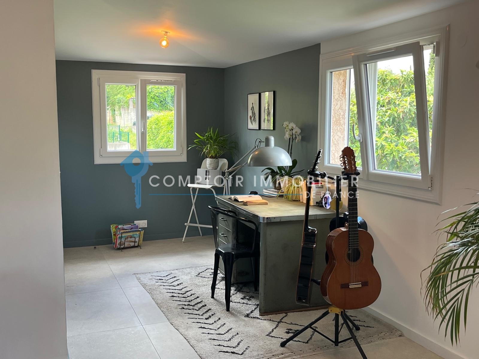 - Au premier étage; une lumineuse pièce de vie, trois chambres, une salle de bains ainsi qu'une salle d'eau.
