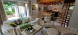 La maison se compose, au RDC pour la partie jour, d’un spacieux salon-séjour de 50m² avec une belle cheminée, d’une cuisine équipée et d’un cellier à usages divers.