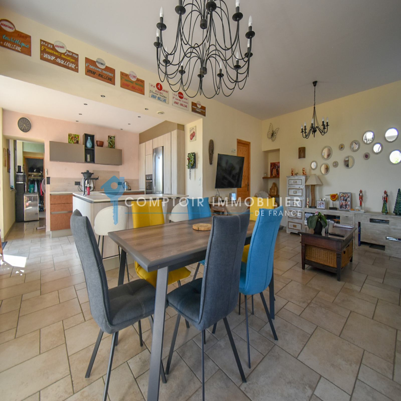 Hall d’entrée pour desservir l’ensemble de la propriété : Salon, séjour et cuisine toute équipée récente, l’ensemble sur 50m². Accès au cellier de 10m², qui permet de sortir sur l’un des garages et une cave. Dans la continuité du cellier un espace toilette et salle de bains avec baignoire Balnéo qui donne également par le Hall d’entrée.