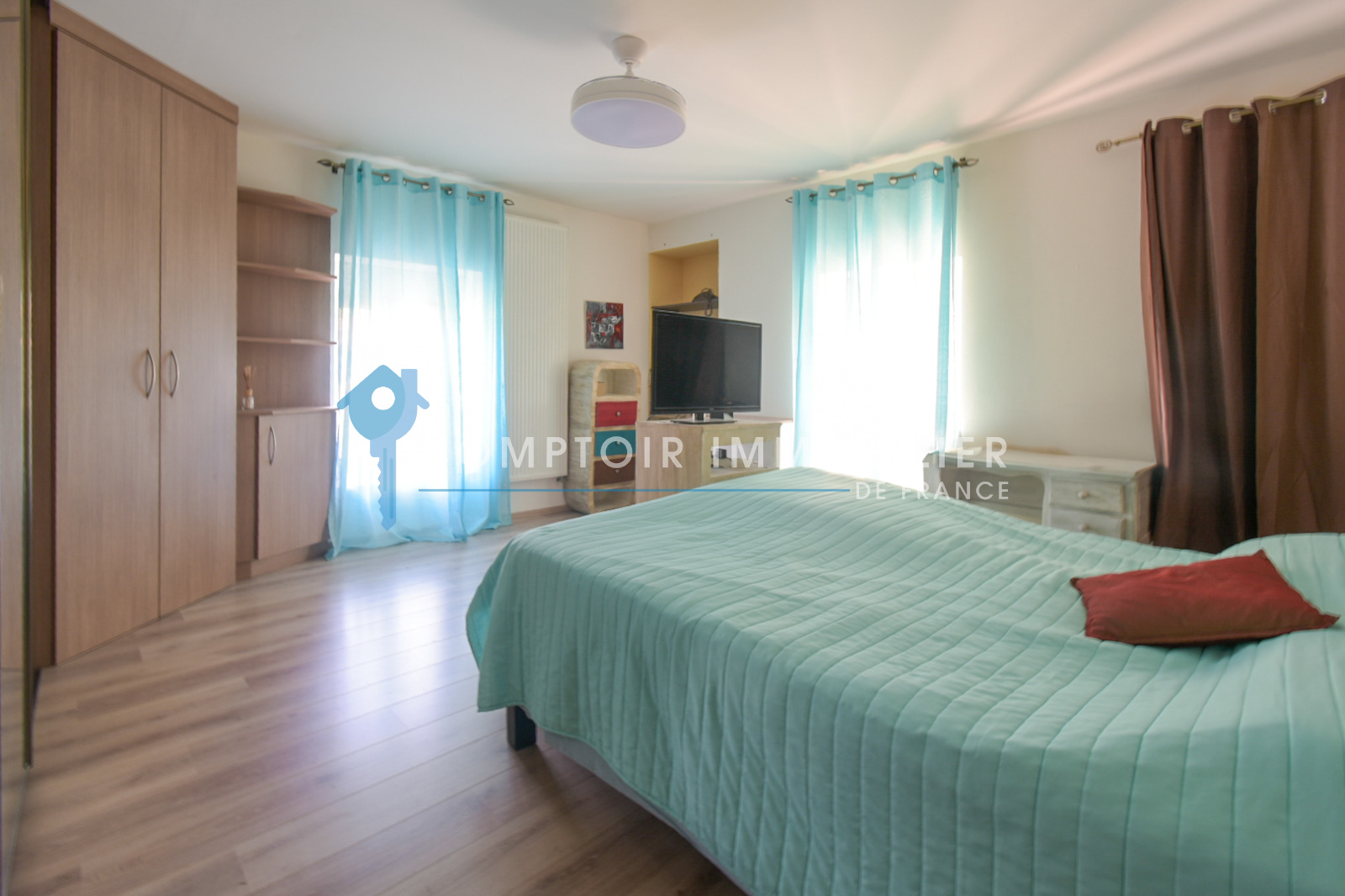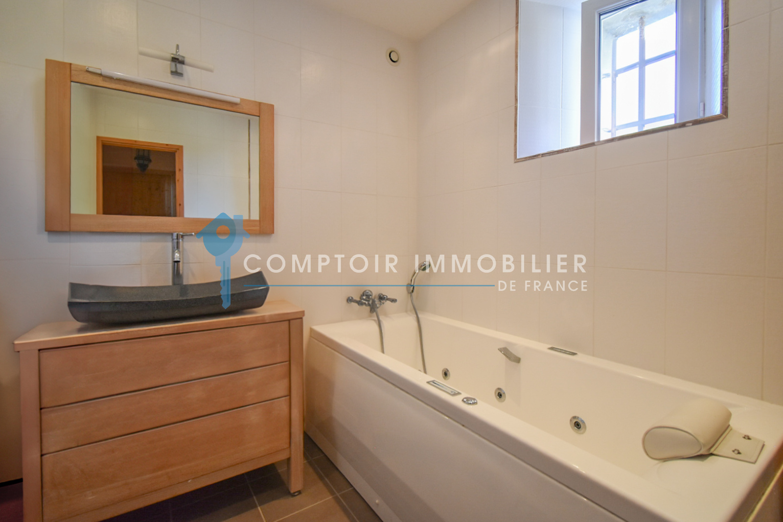 A l’étage, un grand couloir pour desservir 4 grandes chambres de 13 à 30 m² avec un style et un aménagement différent. Ainsi un espace toilette et salle de bains s’y trouve. Dans une des chambres vous avez accès au comble non aménageable sur cette partie d’habitation. Depuis le Hall d’entrée, vous accédez par 3 marches en contre-bas, à une grande pièce, atelier/buanderie de 30m².
