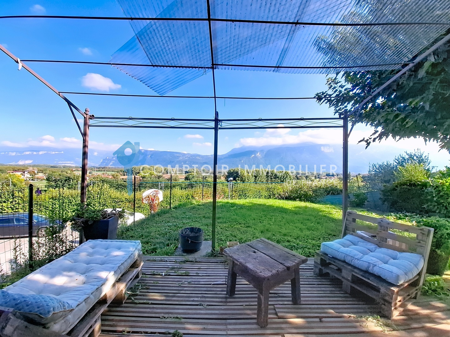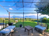 A l'extérieur, la parcelle de 700m² vous proposera différents espaces : un potager, un terrain de pétanque, une terrasse abritée par une pergola et une terrasse avec une superbe vue sur le Vercors.